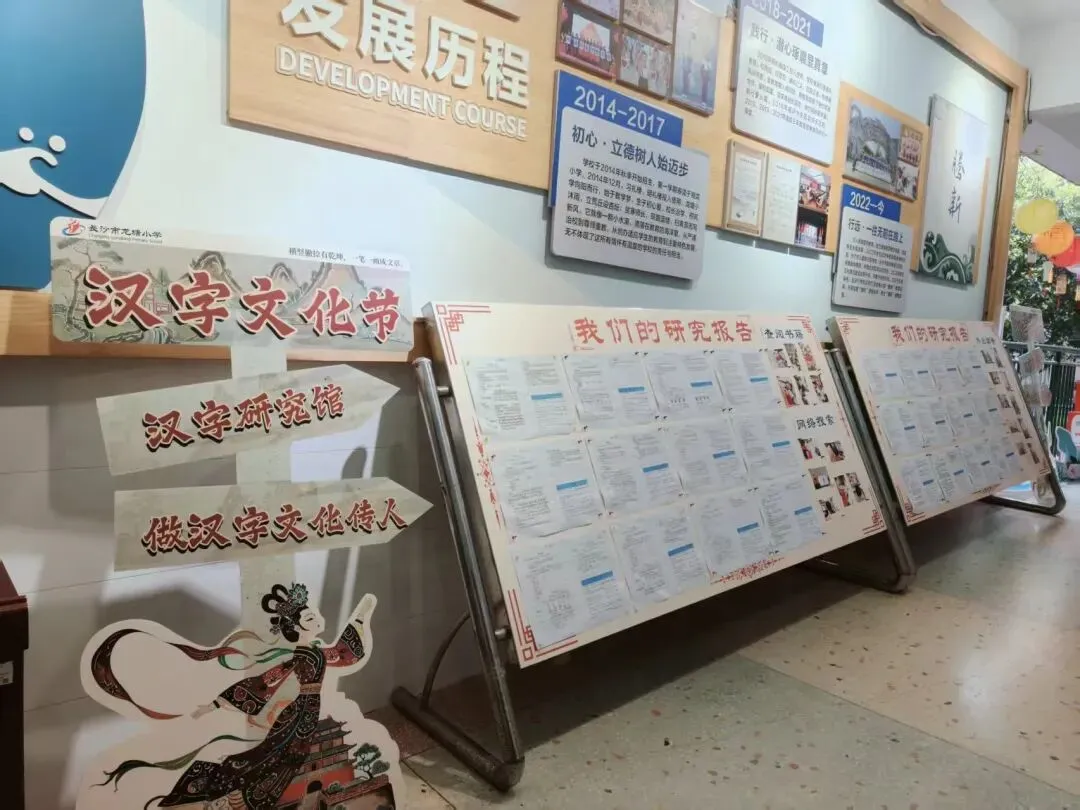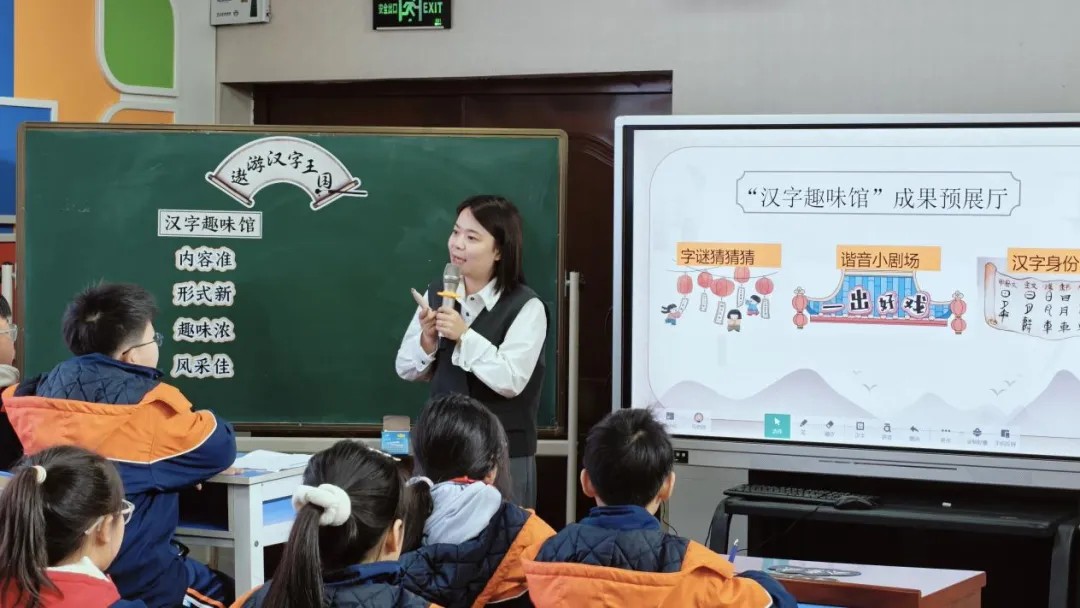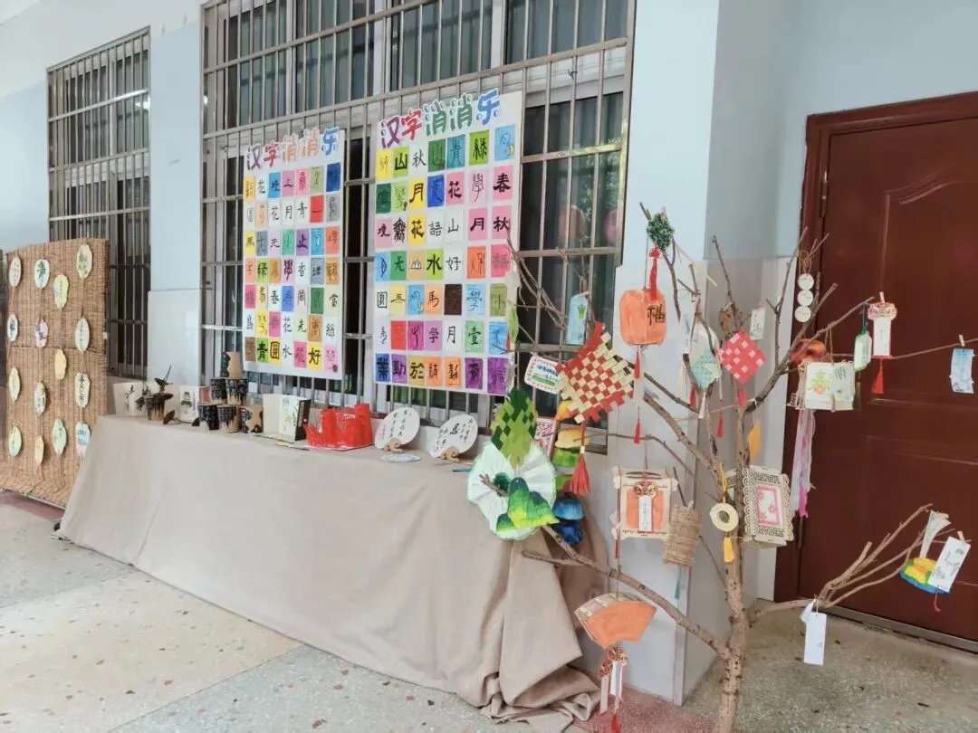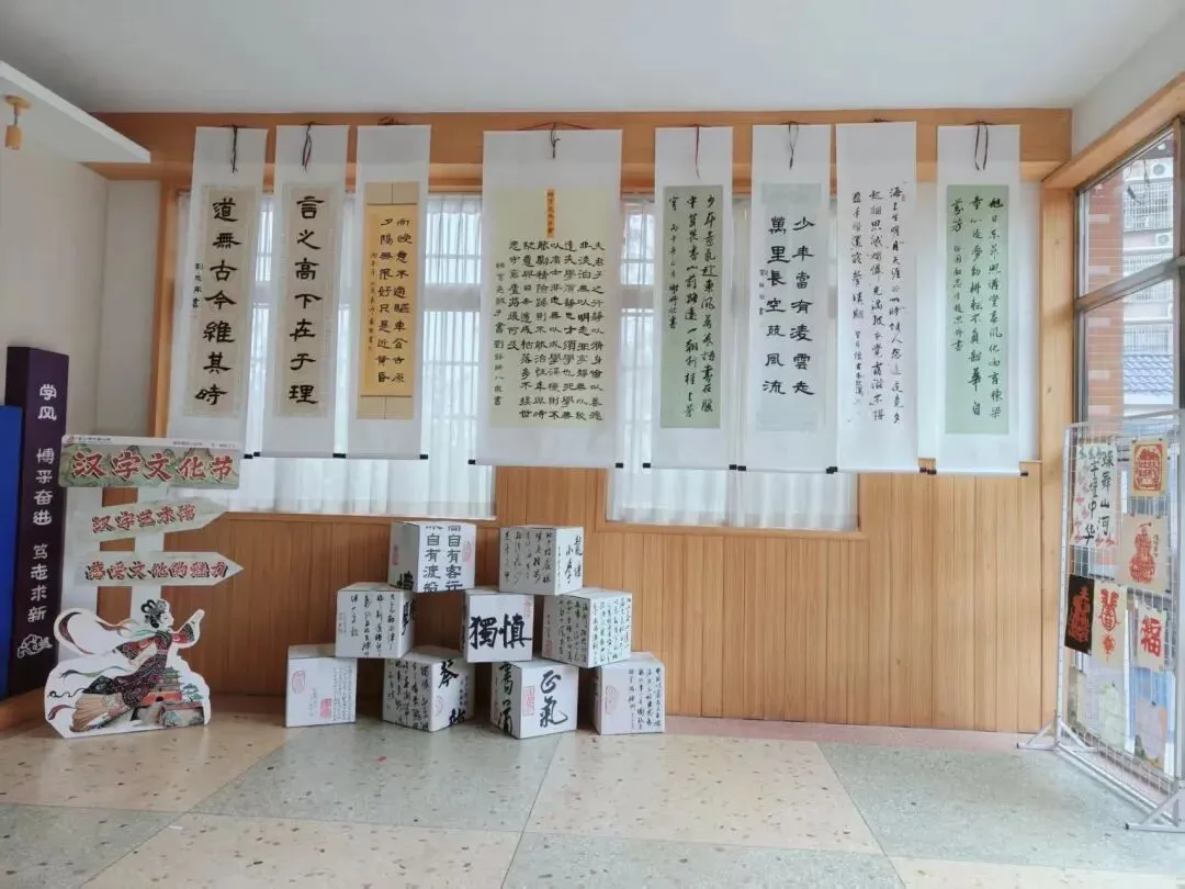 本次活动在龙塘小学的走廊布置了与项目情境对应的三个馆:汉字趣味馆、汉字艺术馆、汉字研究馆,聚焦字谜、谐音、游戏等形式,融合书法、美术、历史等学科,让学生在玩中学、趣中悟,感受汉字的灵动与智慧。