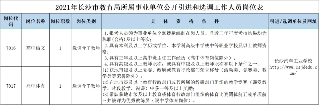 1、《2021年长沙市教育局所属事业单位公开引进和选调工作人员岗位表》