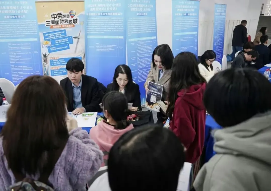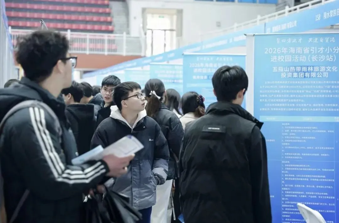 3月24日至25日,2026年海南省引才小分队进校园活动在湖南农业大学、湖南工商大学、长沙理工大学、湖南大学举办,吸引了广大学子积极参与。海南省24家用人单位在校招活动中揽才,岗位涉及教育、能源、免税零售、数字产业、国际贸易、生物科技、文旅服务、文化传媒、工程咨询设计等多个领域。“海南自贸港建设如火如荼,具有天时地利人和的优势。”提前做了“功课”的农艺与种业专业硕士研究生吴同学说,位于海南的南繁基地得天独厚,正加快建成集科研、生产、销售、科技交流、成果转化为一体的服务全国的“南繁硅谷”,希望有机会到南繁基地工作。作为人文地理与城乡规划专业的大四学生胡同学,在校招现场投递了简历并与相关用人单位洽谈。她透露,海南的乡村振兴、文旅服务、工程咨询设计等行业领域有她感兴趣的岗位,选择余地大,人岗匹配度高。包括这两名青年人才在内,不少湖南高校学子关注2026年海南省引才小分队进校园活动并踊跃应聘。