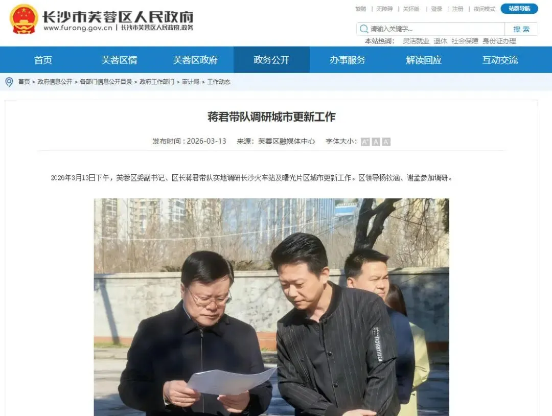 2026年3月13日下午,芙蓉区委副书记、区长蒋君带队实地调研长沙火车站及曙光片区城市更新工作。