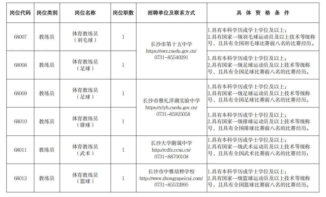 4.取消、核减相应岗位招聘计划或修改报名条件、延长报名时间,拟聘用人员结果公示等信息均在长沙市人力资源和社会保障局官网、长沙市教育局官网教师招聘栏目公布。入围体检人员名单等相关信息在长沙市教育局官网教师招聘栏目公布。