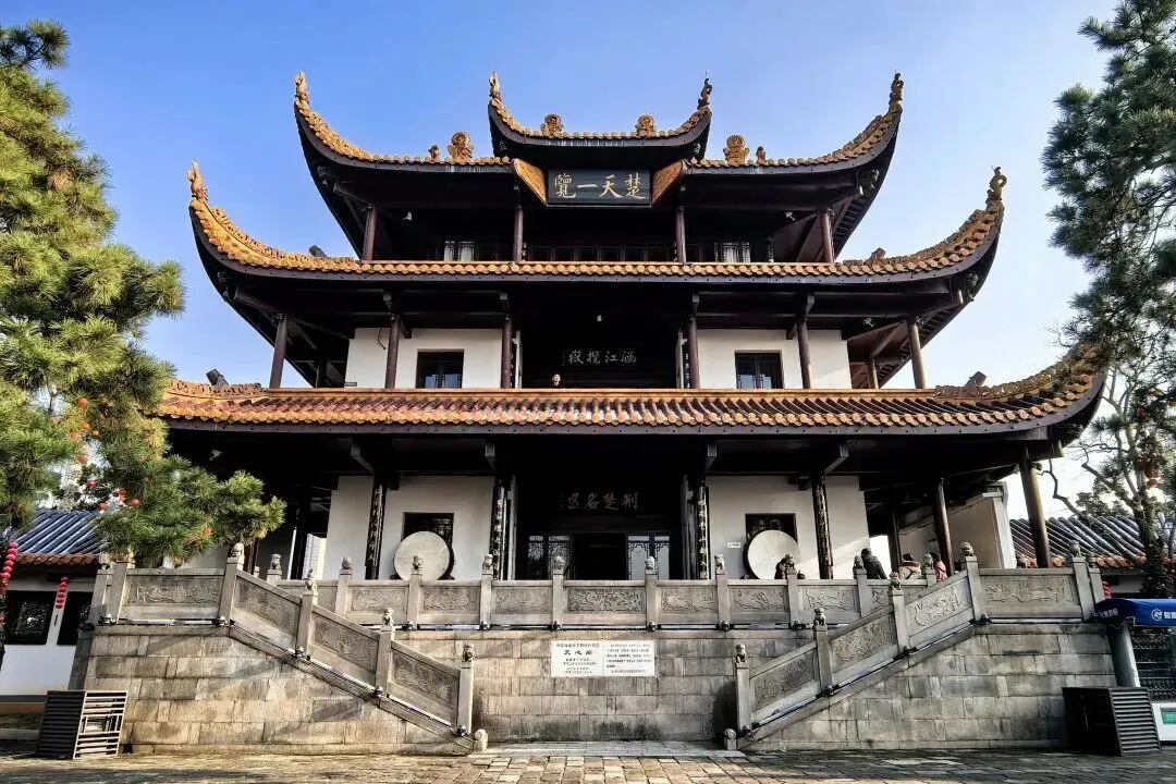 登阁远眺,老城区的街巷脉络清晰可见,向南可眺湘江与橘子洲,向东可见城南繁华。