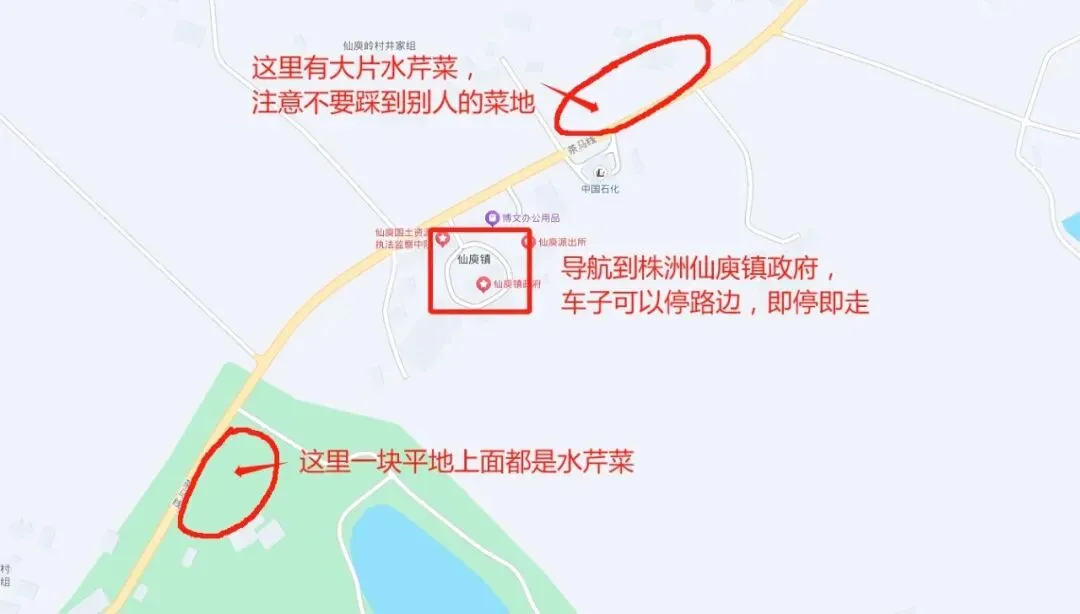 📍导航搜「株洲仙庾镇政府」,🚗车子可直接停路边,沿着茶马线走,地图标记的两个点位水芹菜超多,妥妥实现野芹菜自由!