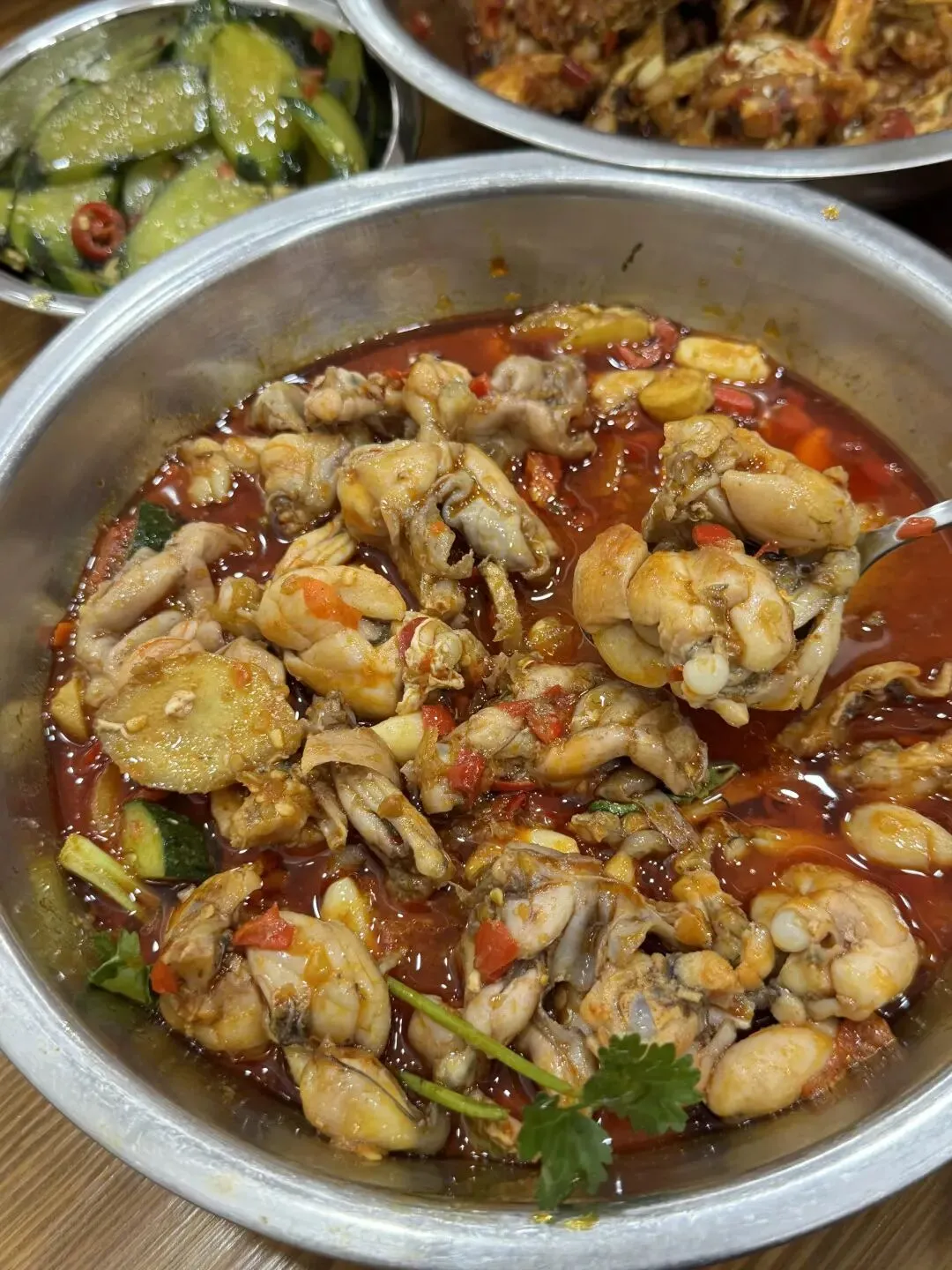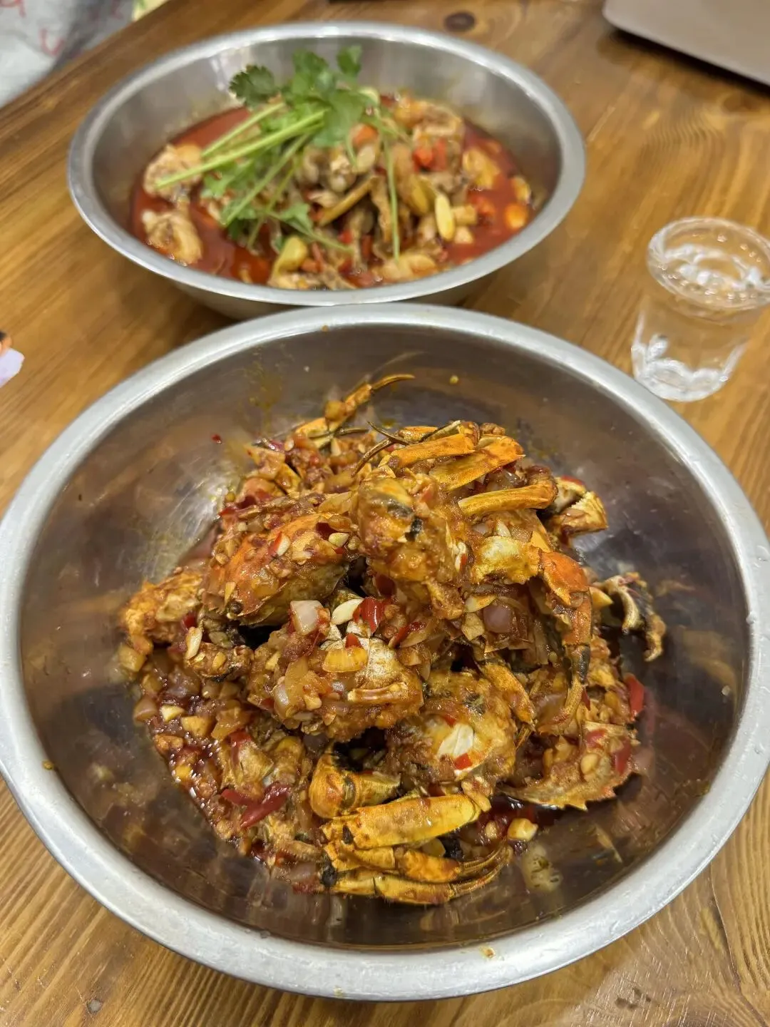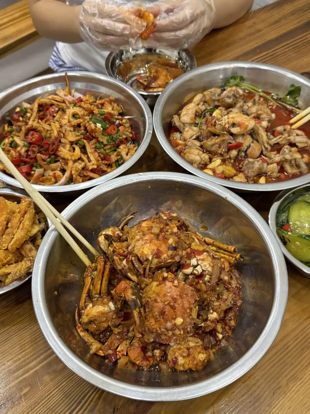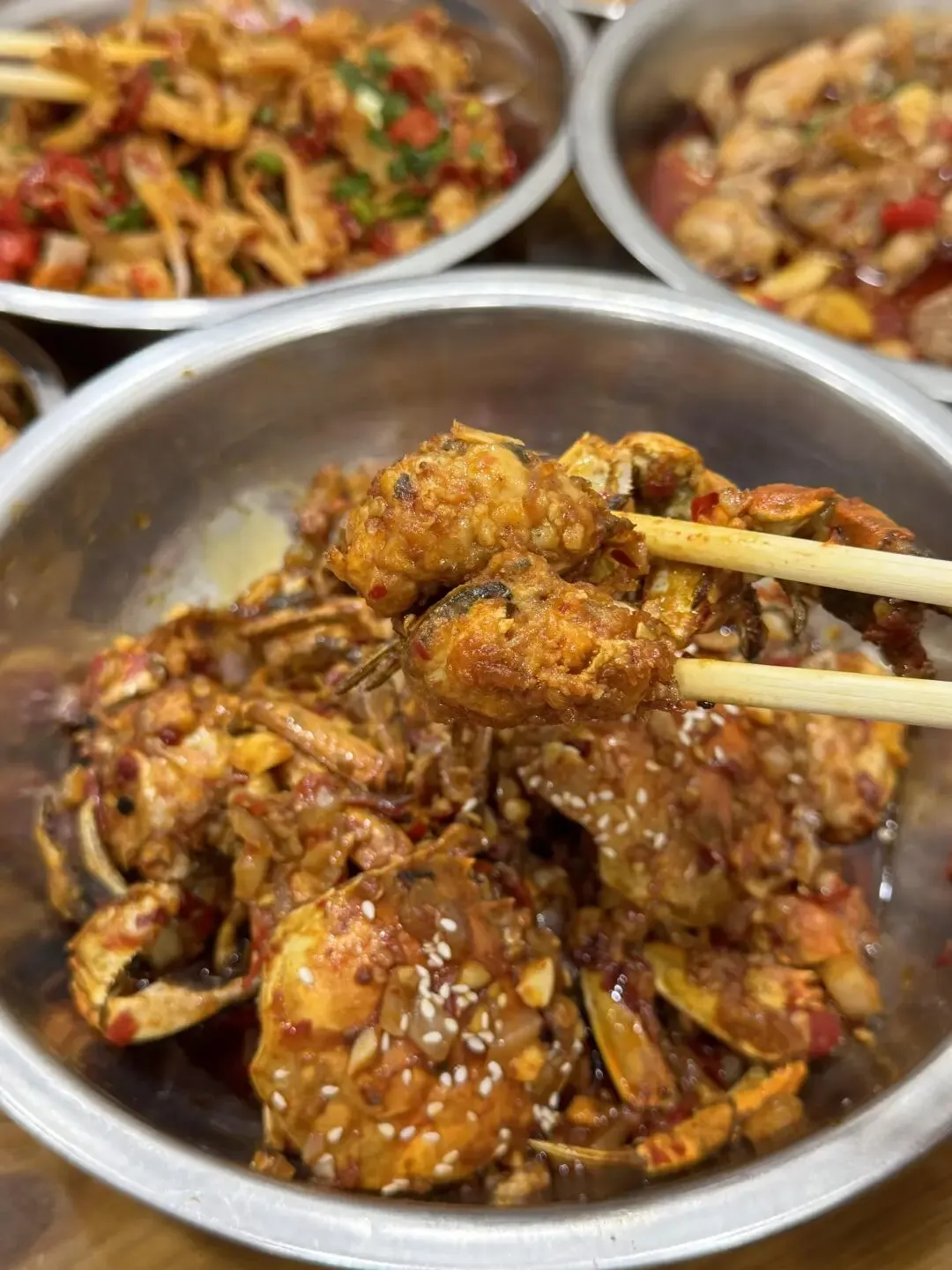 夫妻店!老板一家经营着,虽然是苍蝇馆子但很干净。秘制香辣蟹干香干香的,蟹肉都是又大又肥的。。