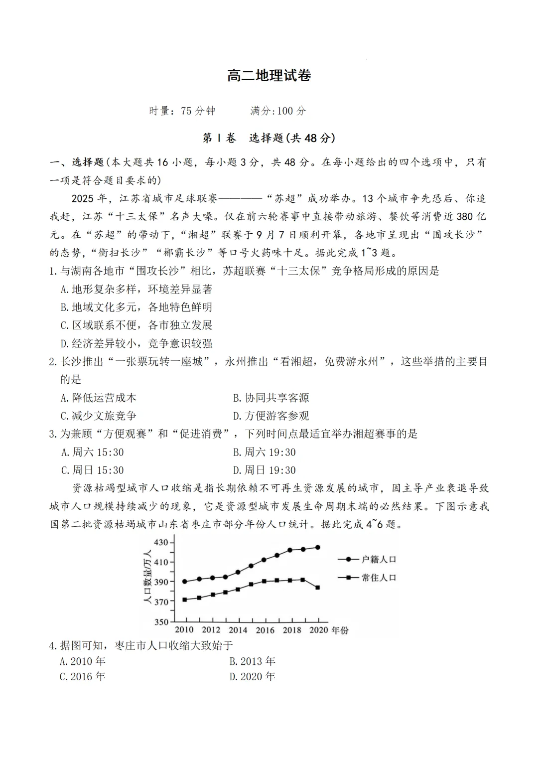 【高二世界】山东省百师联盟2024-2025学年高二下学期6月联考地理试题