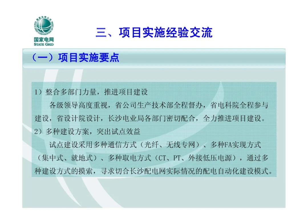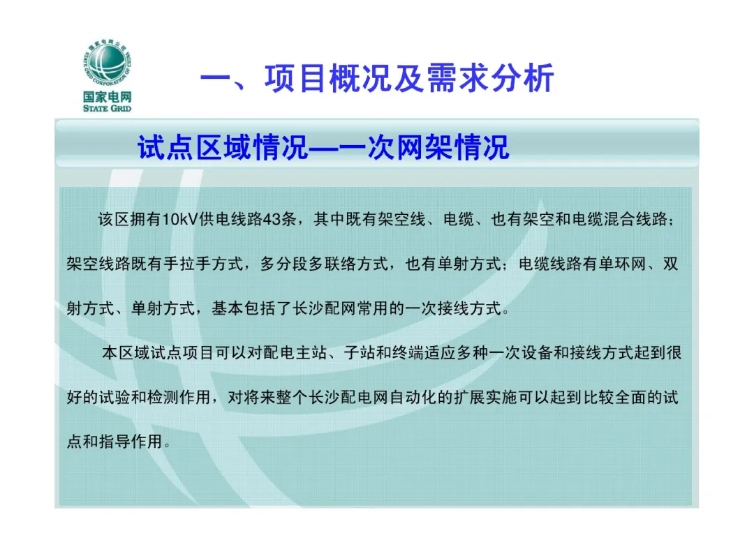 本文是长沙配电自动化试点工程的案例交流报告,介绍了项目概况需求、方案建设内容与项目实施经验。