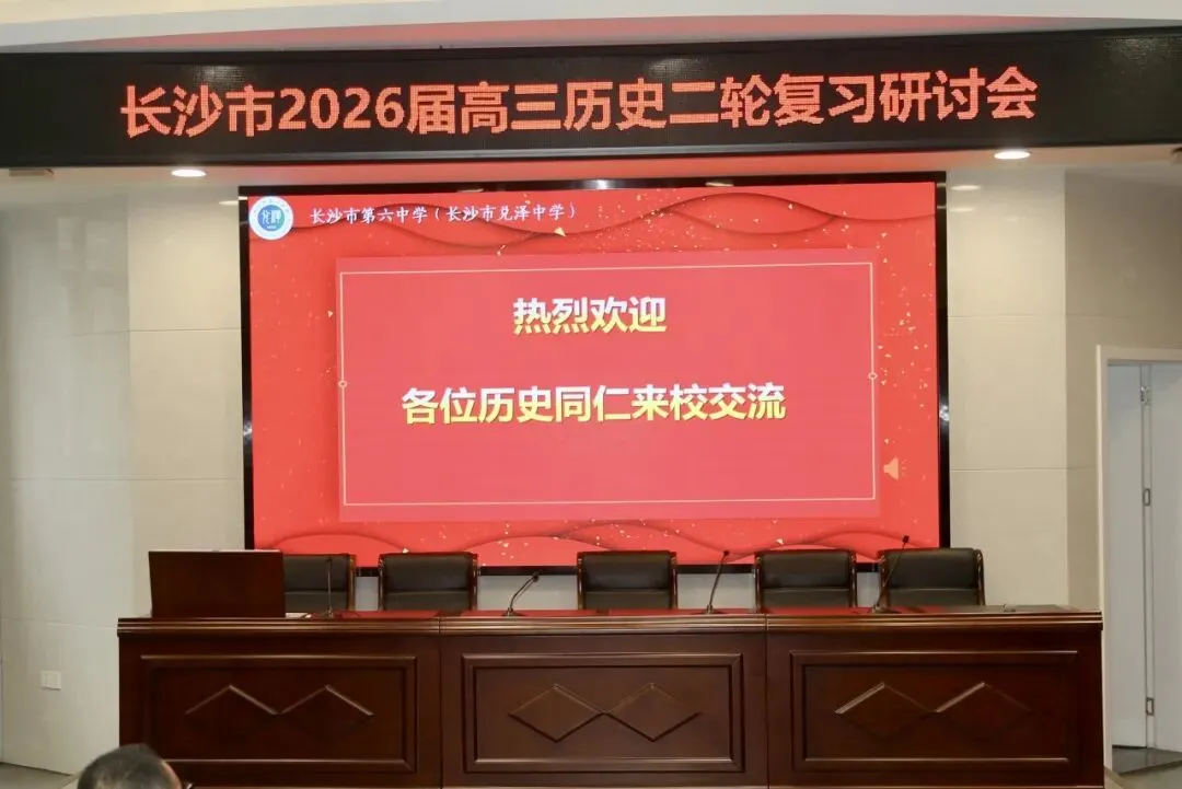 2026年3月25日下午,长沙市高三历史二轮复习研讨会与龚宇名师工作室研修活动在长沙市第六中学同步举行。两场活动分别聚焦新高考二轮复习备考策略与青年教师专业成长,通过示范课展示、专题讲座、课例研讨、专家点评等环节,为全市历史教师搭建了高质量的跨学段交流平台。