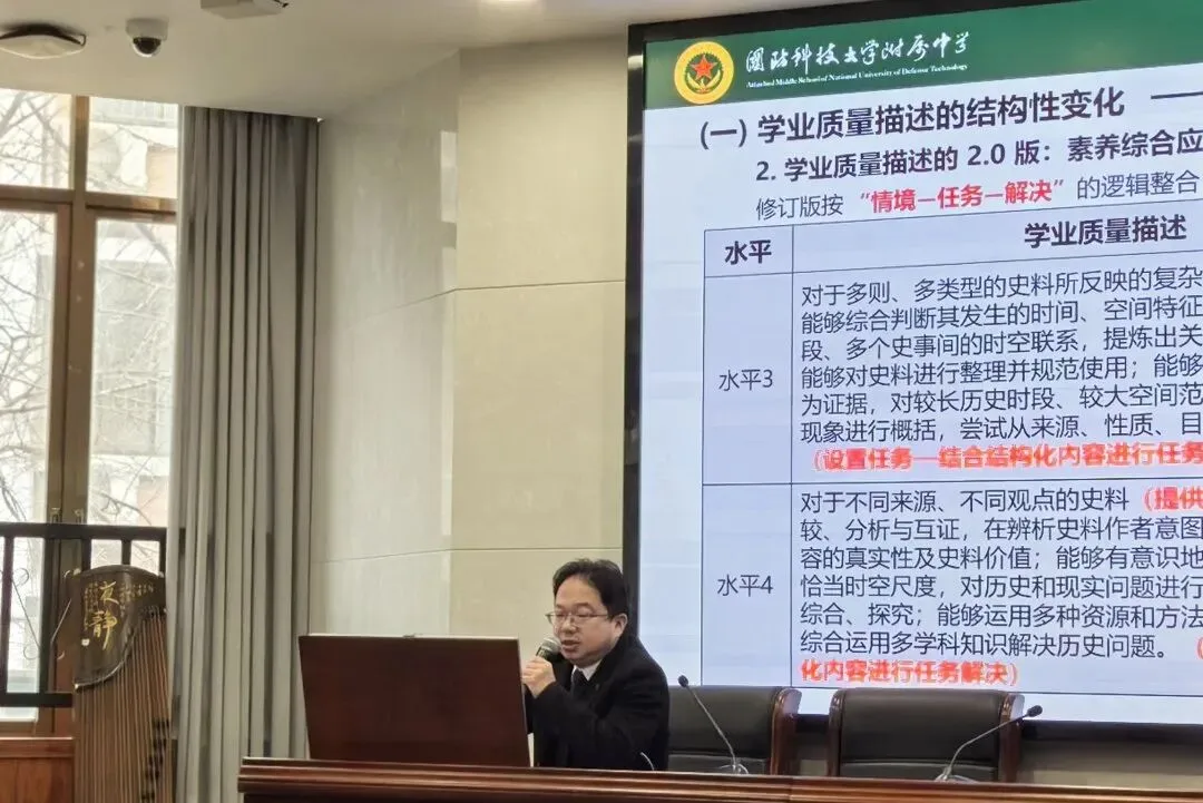 高中研讨会在学校多功能报告厅举行,由历史教研组长陈志荣老师主持。王旭校长在致辞中介绍了学校的优良的办学成果,对长沙市教科院及历史教育同仁的莅临表示了热情的欢迎,对2026届长沙市历史高考寄予良好的祝愿。