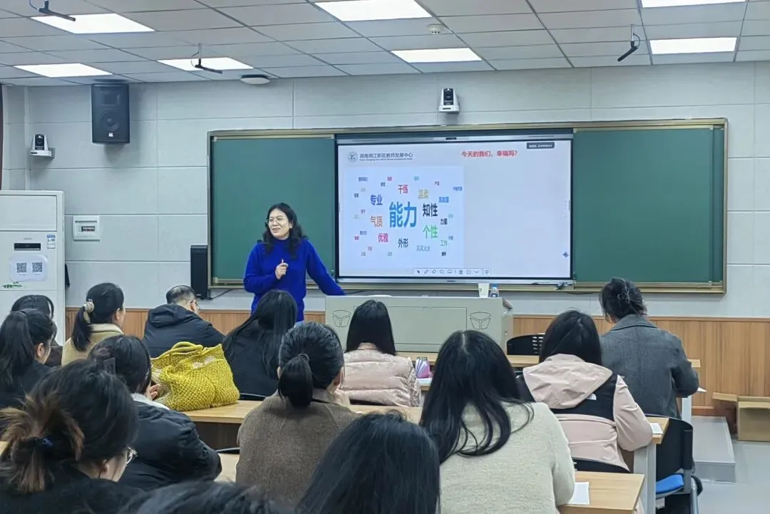 专题讲座环节,代洁老师带来《解锁你的幸福“力”——青年教师职业发展的核心动能》。她结合问卷调查数据,剖析了教师“价值认同与现实压力”之间的核心矛盾,提出从“追求感觉”向“培养能力”转变的幸福力理念,分享了职业认知、情绪调适、亲密关系维护等实践策略,强调“幸福是可以学习的能力”。