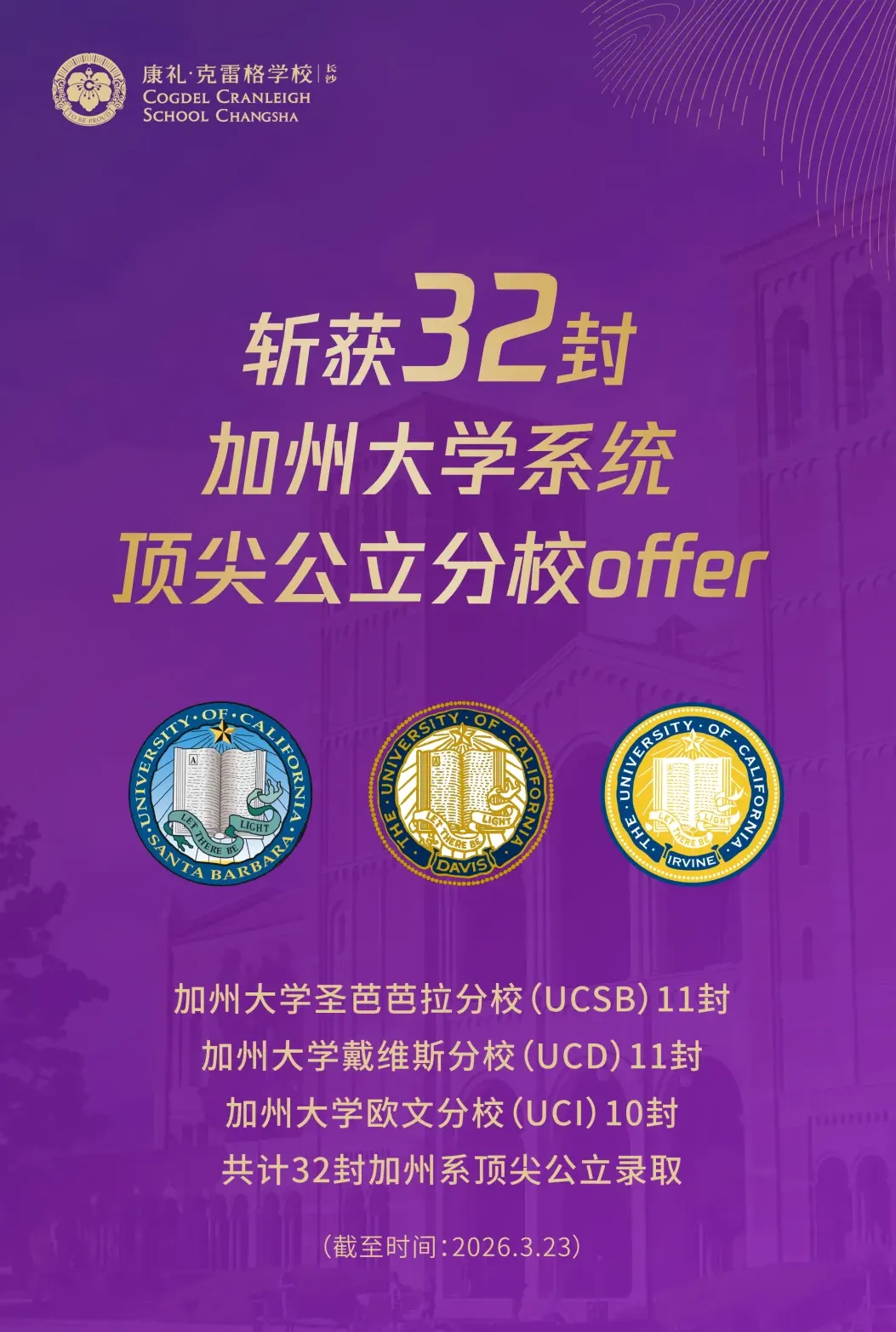 在2026Fall美国本科申请的激烈角逐中,长沙康礼学子成功拿下北卡罗来纳大学教堂山分校王牌专业录取,更斩获32封加州大学系统顶尖公立分校offer,用硬核成果彰显康礼顶尖的升学指导实力与学生卓越的综合素养!