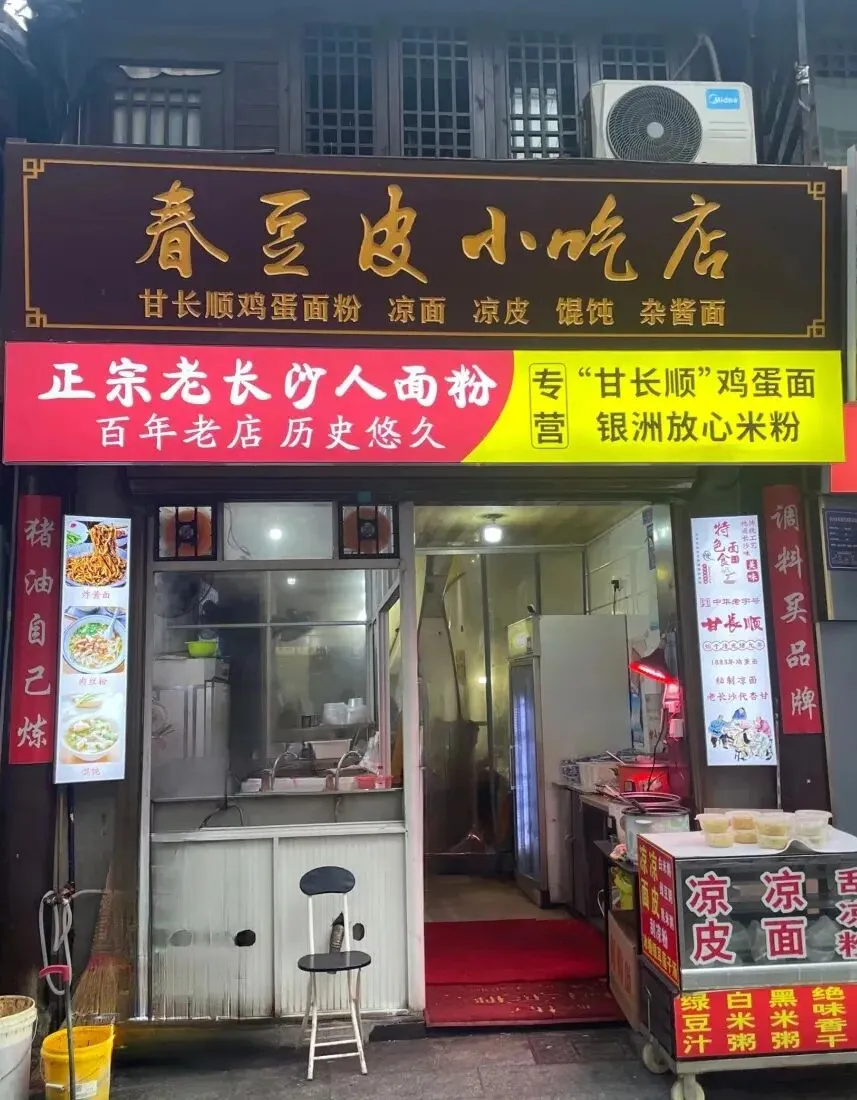 这里叫春豆皮小吃店,这个店并不卖豆皮,春豆皮只是个店名而已……
