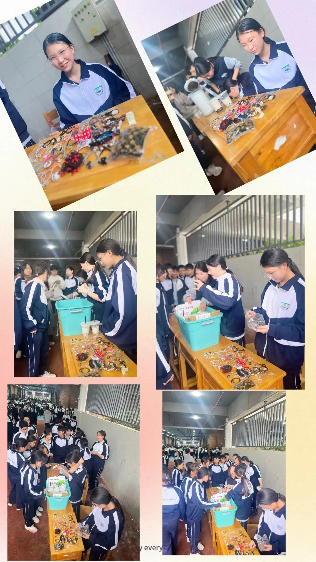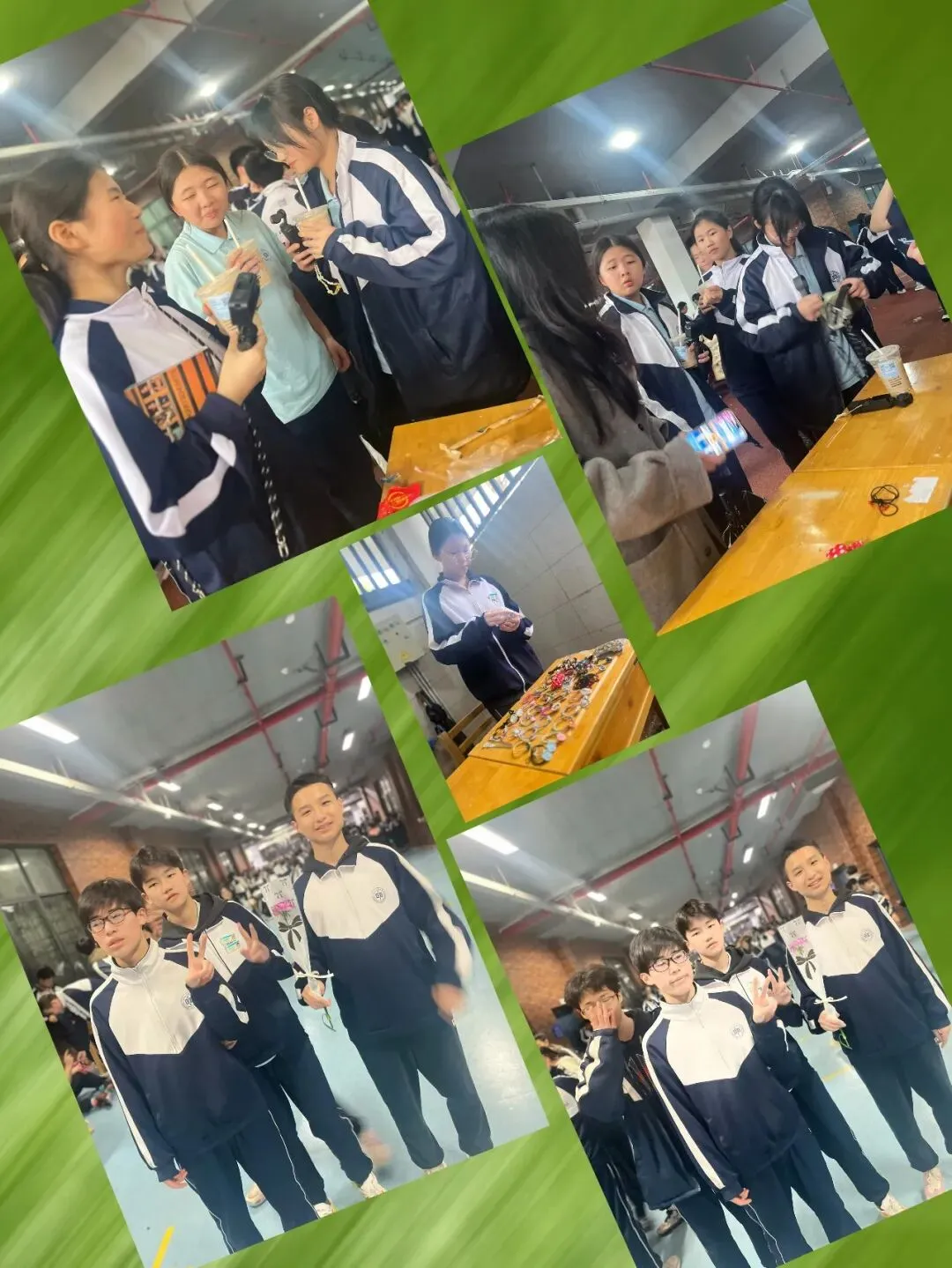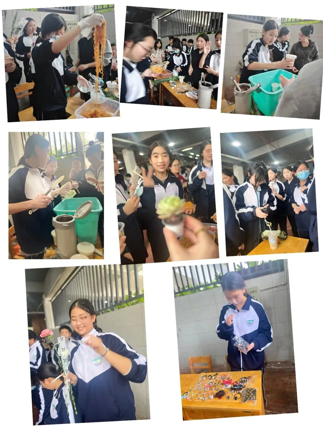 校园里,一个个精心布置的摊位有序排列,宛如一条热闹的商业小街。摊位上摆满了各种各样的物品,从各类书籍、学习文具,到充满创意的手工艺品、美食小吃,应有尽有,让人眼花缭乱。