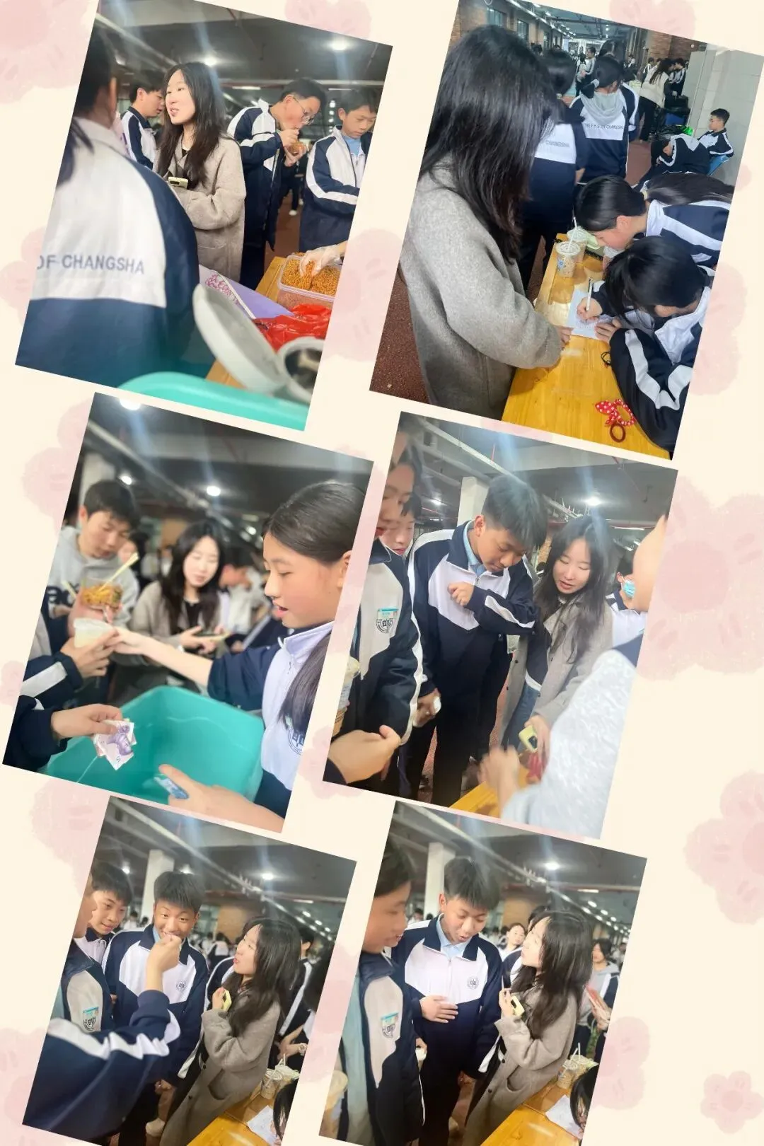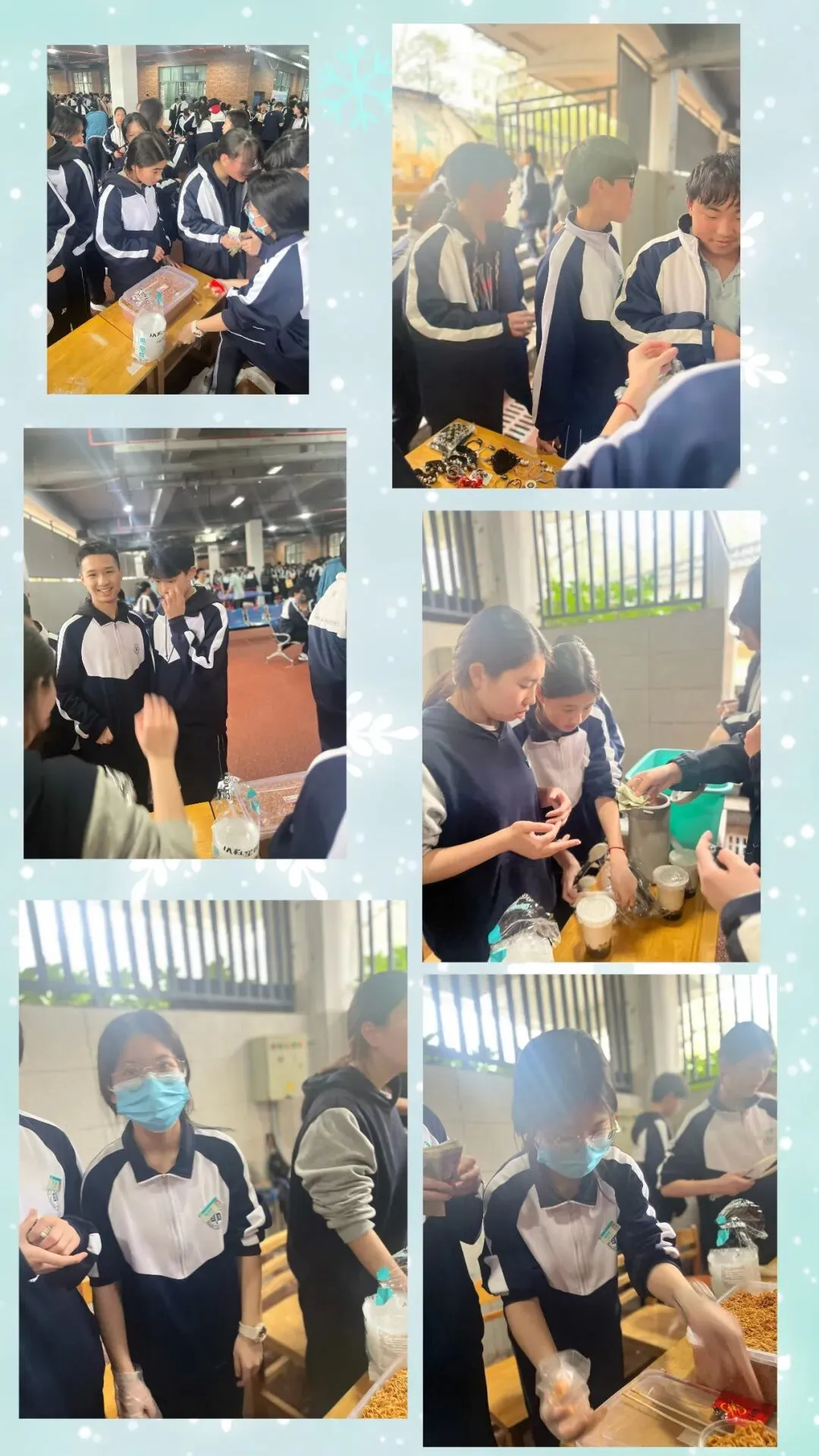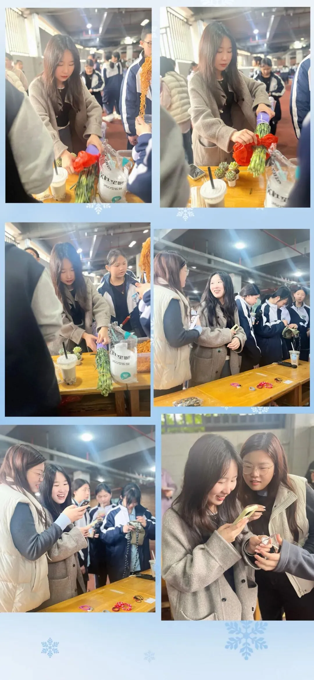 校园里,一个个精心布置的摊位有序排列,宛如一条热闹的商业小街。摊位上摆满了各种各样的物品,从各类书籍、学习文具,到充满创意的手工艺品、美食小吃,应有尽有,让人眼花缭乱。