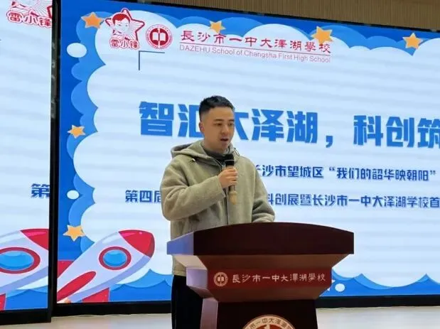 在全场师生的热切期待中,校长王麟郑重宣布:“长沙市望城区‘我们的韶华映朝阳’——第四届‘雷小锋’超炫科创展暨长沙市一中大泽湖学校首届科创节正式开幕!”掌声如潮,标志着学校首届科创节正式启航。