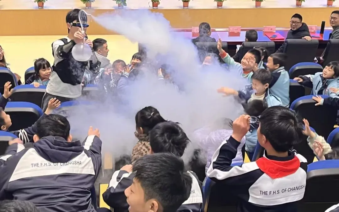 开幕式后,“好奇之旅”科普进校园活动精彩登场。特邀科普团队为全体师生带来了集互动性、趣味性与知识性于一体的科学实验秀与科技作品体验。