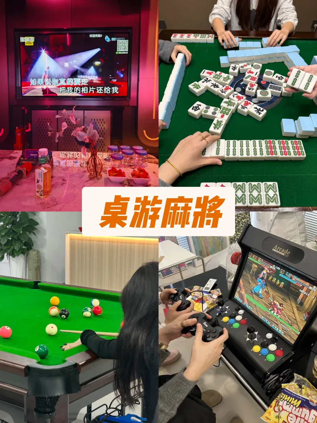 休闲类:麻将棋牌、桌球、露天KTV、围炉煮茶、垂钓、时令采摘