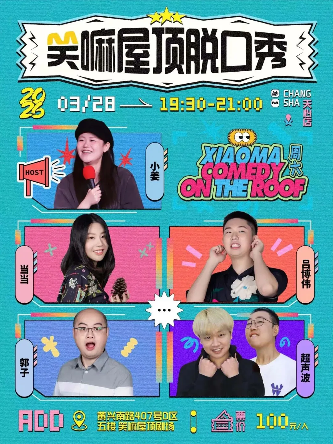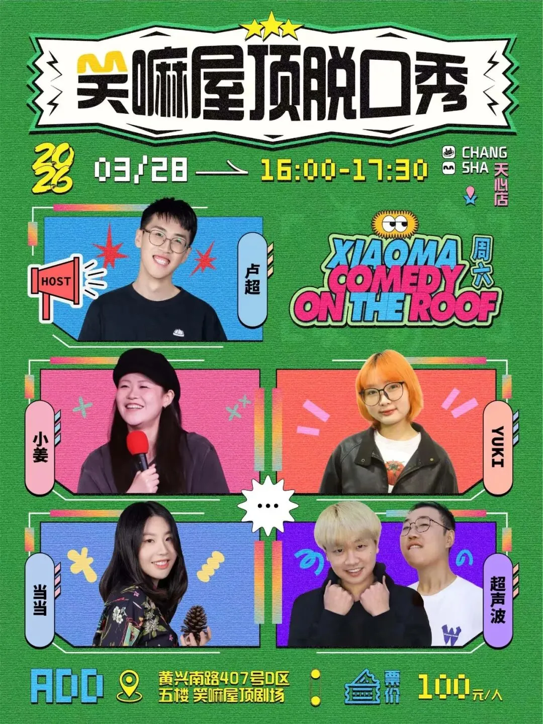 本周六,我们在天心区的屋顶剧场各安排了2场脱口秀拼盘。