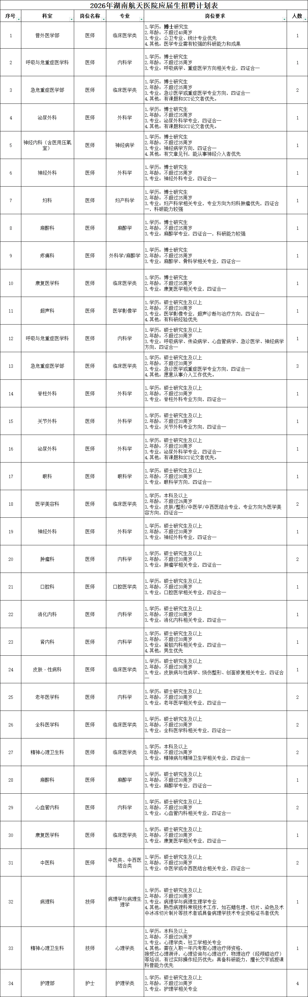 附件1:湖南航天医院公开招聘报名表