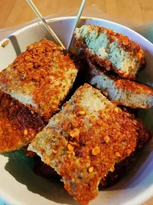 臭豆腐要挑现炸的,外脆里嫩,汁水往外冒,蘸料别贪多。