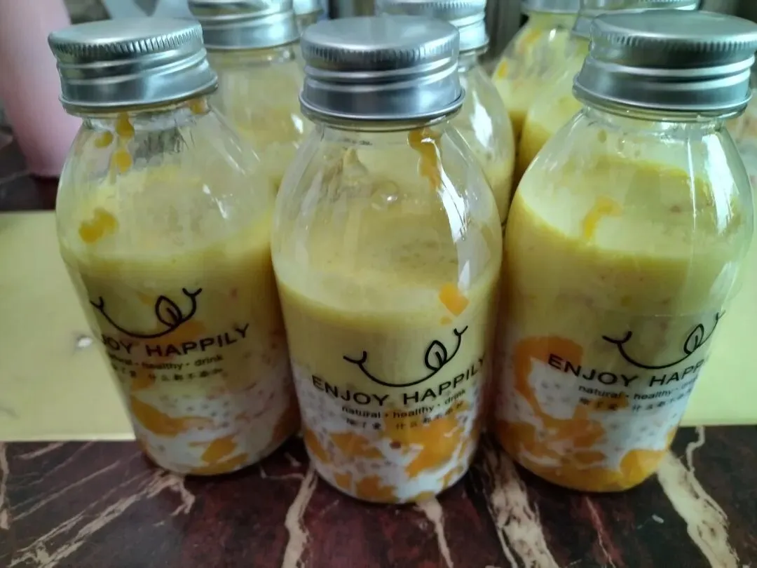 我们早上做完,然后放在冰箱里面,中午让同学的妈妈帮我带过去的,他们小孩子买东西吃就会很口渴,所以我这个杨枝甘露卖8块钱一瓶都秒光了