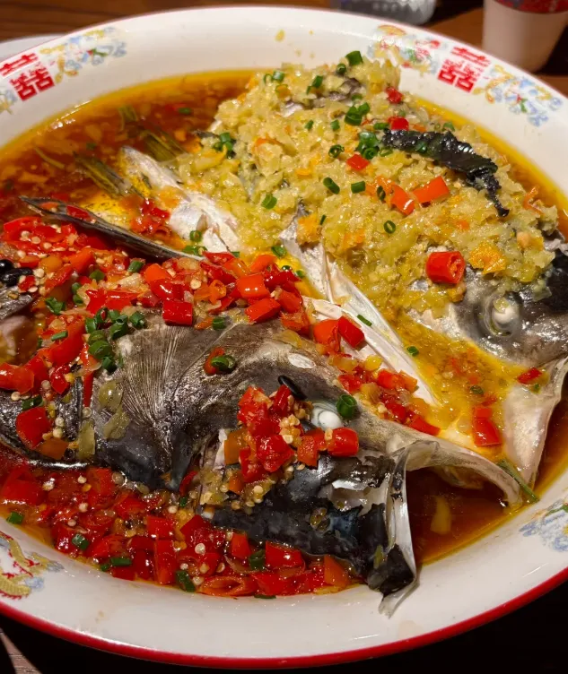 蒸湘鱼头:本地淡水鱼头,搭配豆瓣和辣椒慢蒸。老城区老牌饭馆最佳。