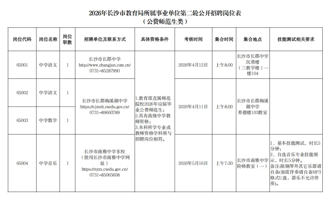 1.《2026年长沙市教育局所属事业单位第二轮公开招聘教职工公告》通过长沙市人力资源和社会保障局官网 (http://rsj.changsha.gov.cn)、长沙市教育局官网(http://jyj.changsha.gov.cn)公布。