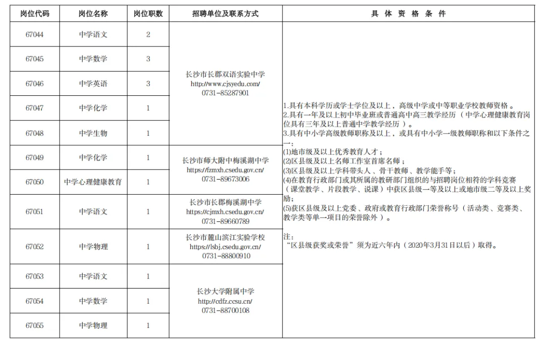 5.本次招聘各环节的安排如有变化,将在长沙市教育局官网教师招聘栏目公布。