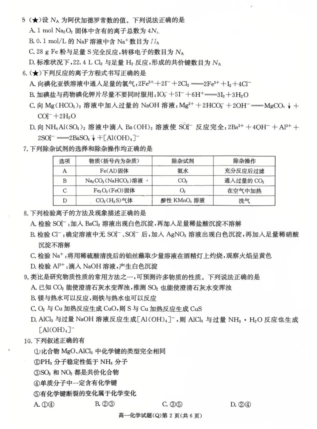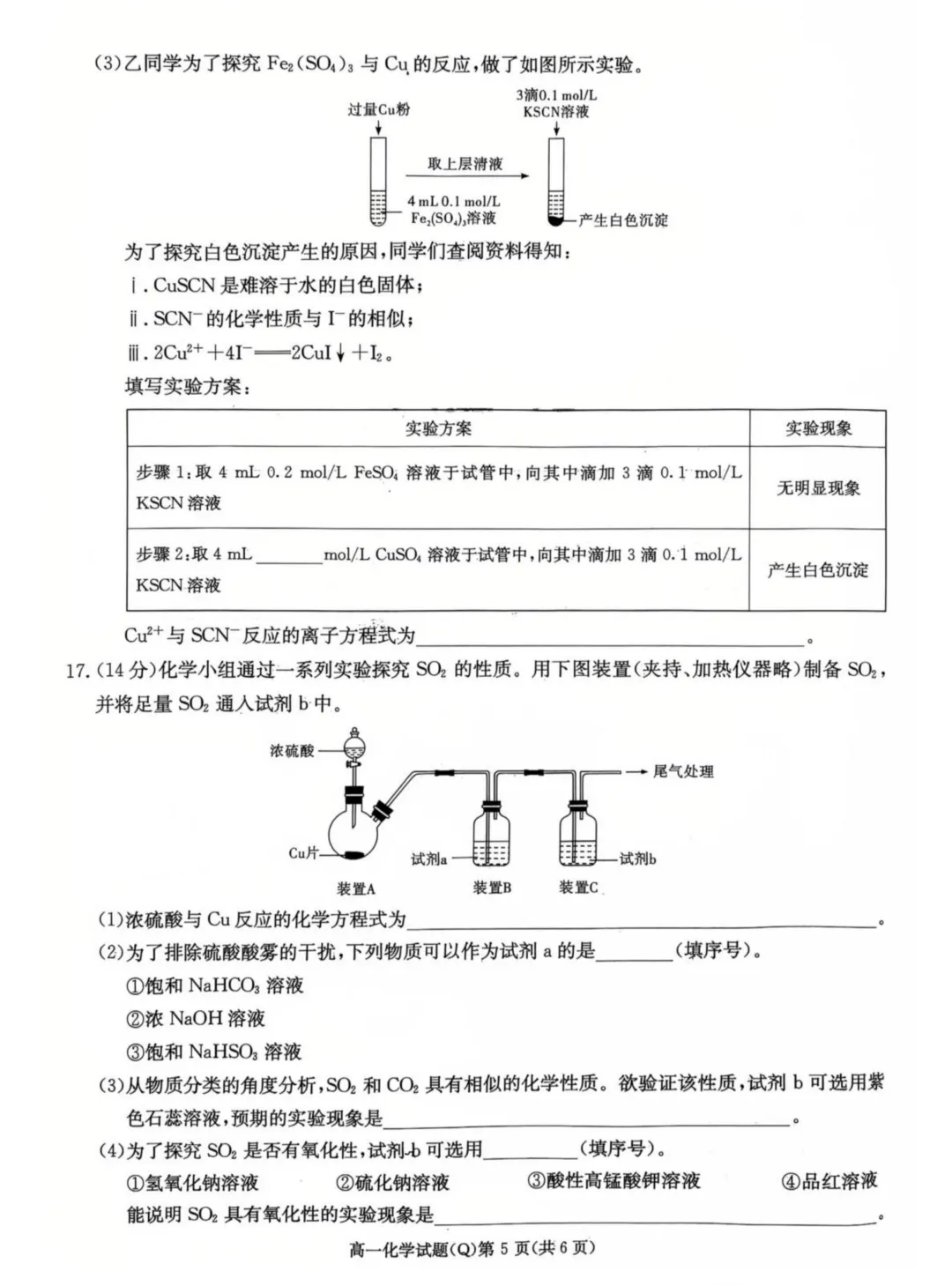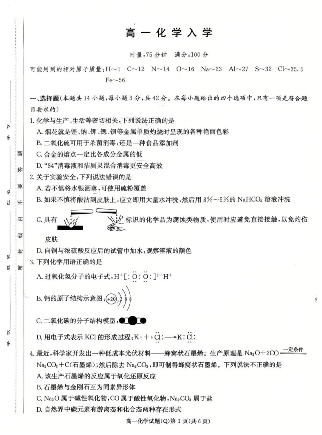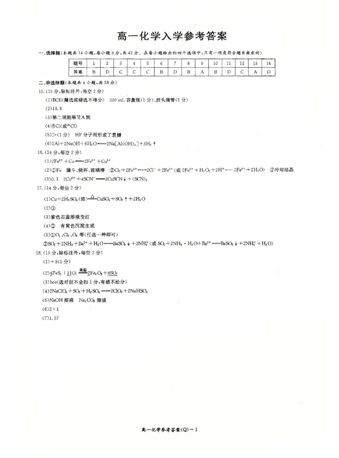 湖南长沙一中2025-2026学年高一下学期开学考试化学试卷与答案,下载方式如下: