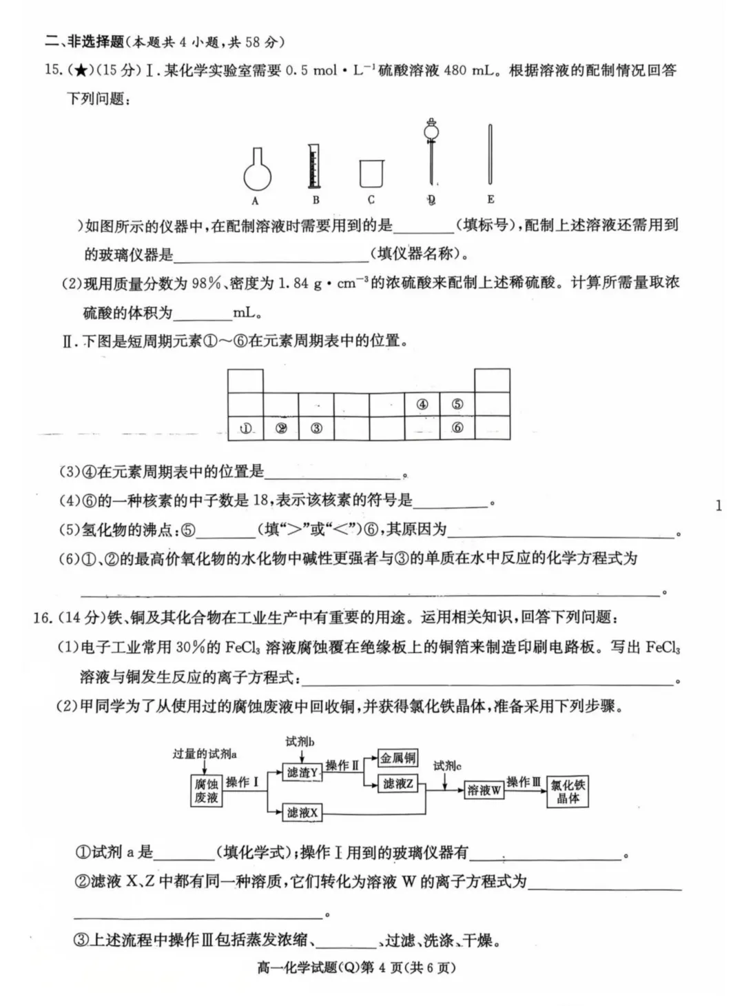 六、高中化学二轮复习小题精练/大题精练