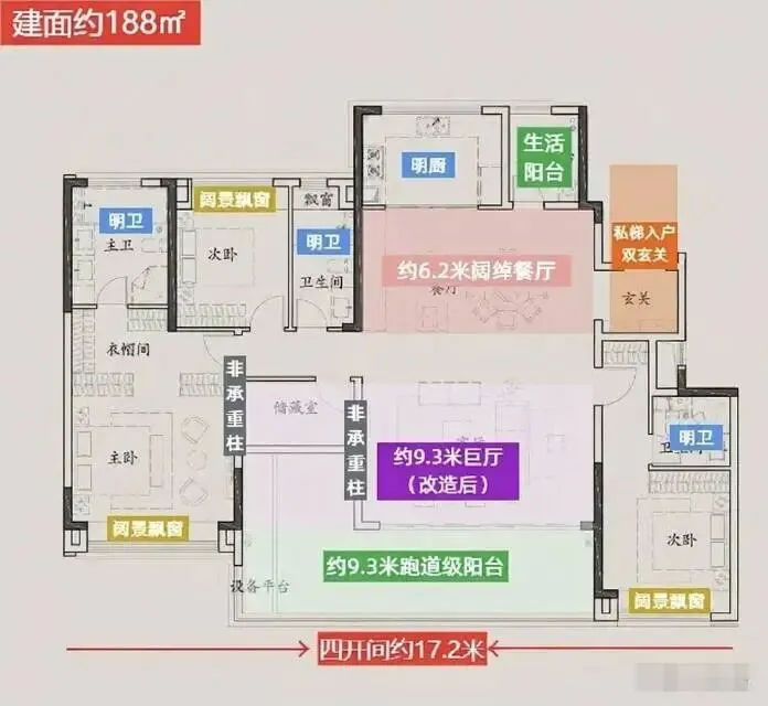 - 格局:四开间朝南、双套房、横厅/方厅、南北双阳台、顶楼送阁楼