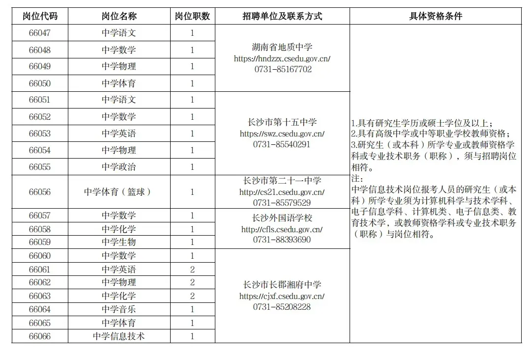 咨询电话(工作时间):长沙市教育局人事处0731-84899737;长沙市教育公共服务中心0731-84899743。监督电话:长沙市教育局机关纪委0731-84899757;长沙市人力资源和社会保障局事业单位人事管理处0731-88666037。
