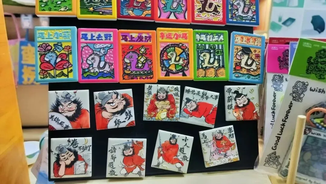 还看到一家做冰箱贴,做了武汉印象全套彩瓷玻璃贴,甚至还有钟馗系列的。