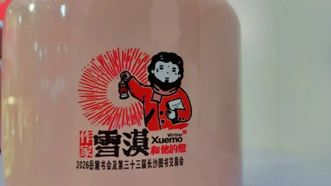 红帆安排人给每一位前来购书的读者,盖上一枚纪念章。这枚纪念章,是套色印章,有两柄印。先将其中一柄印套在一个方框里,印好后,方框保持位置不动。再将另一方不同颜色的印,套入同一个方框内,再印。印完后,就是身处黑红之间的雪漠,笑容可掬地提着一盏灯。