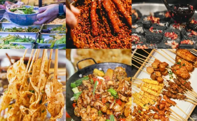 拉丝巨长的芝士玉米,弹到嘴巴的铁板虾滑,咬上一口会爆浆的臭豆腐,麻辣顺滑的米粉,百脆里糯的糖油粑粑,堆成小山的钵子菜,便宜大碗的牛肉火锅。