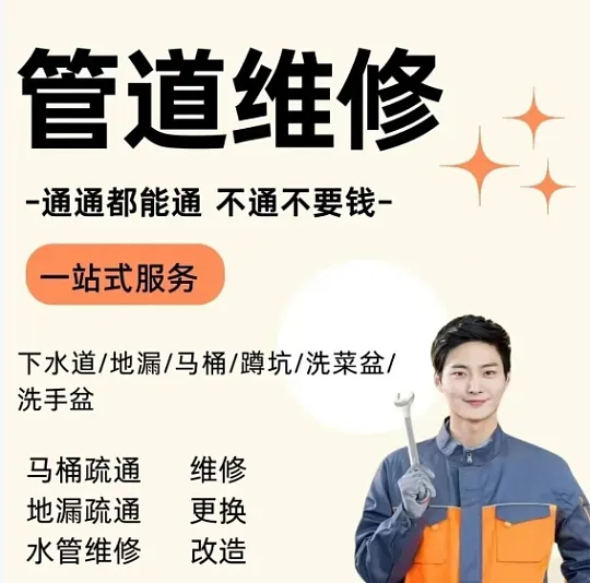 🚽 管道疏通:使用专业疏通设备,解决各类疑难下水道、卫生间、地漏、浴缸、菜池、马桶、蹲坑等堵塞。