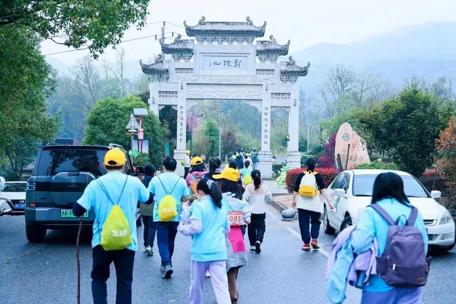 本次登高活动依托影珠山的巍峨山势与盎然春色,将“登高征服”的硬核挑战融入自然画卷。赛道沿途特设三处“福气”打卡点,选手在点位拍摄后,可集福领取文创纪念品。终点处还设置了幸运套圈、亲子投壶、福字拓印等互动游戏,让孩子们在运动之余感受传统文化的魅力。