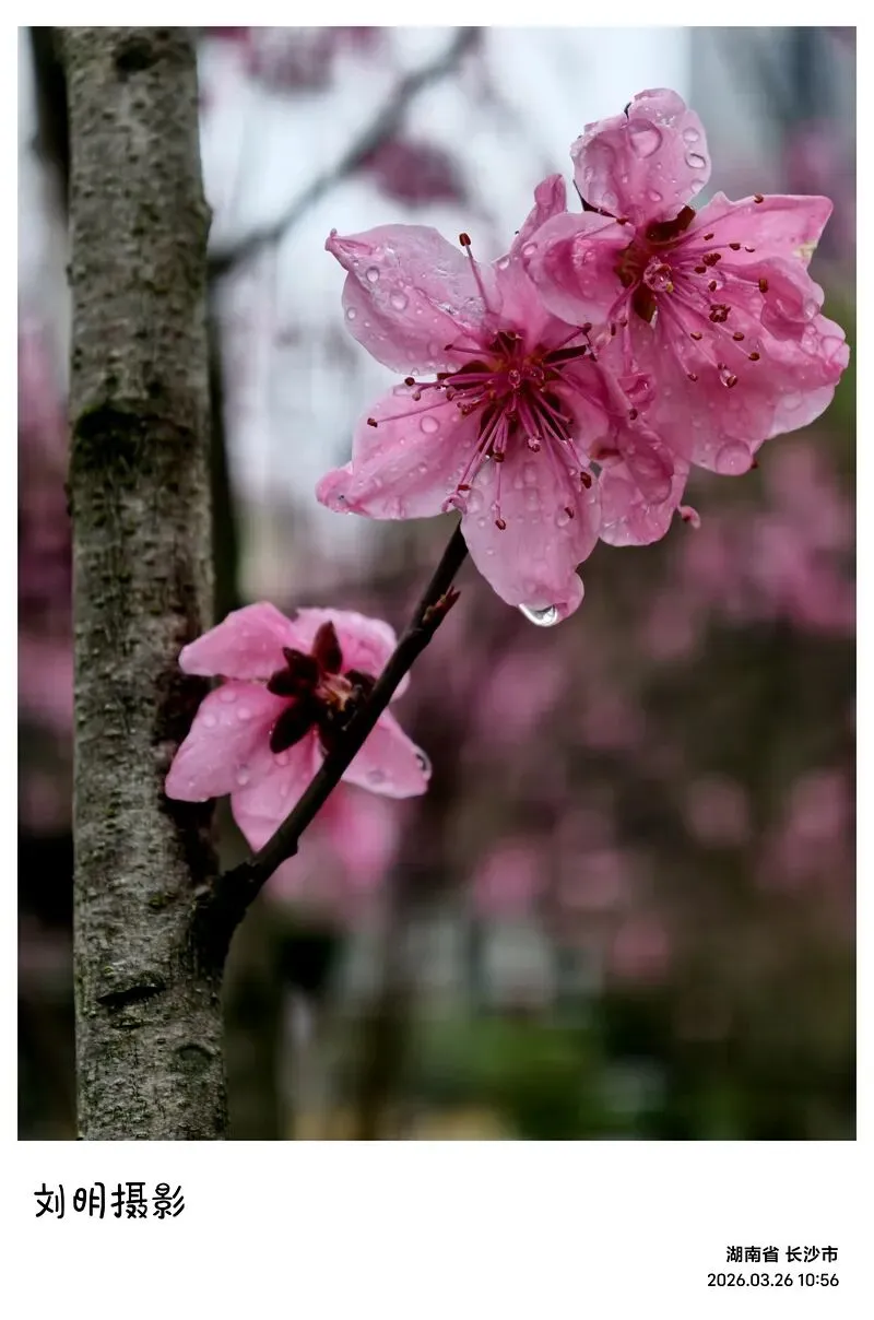 长沙的三月,雨多,细细的雨丝,断断续续,缠缠绵绵,不肯歇。江畔的桃花、山茶花,花瓣上都挂着水珠,沉甸甸的。
