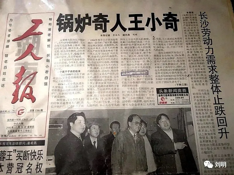 2000年12月28日,一篇《锅炉奇人王小奇》刊发在《湖南工人报》头版头条。不久后,我从一名普通电工,被破格提拔为厂长秘书。