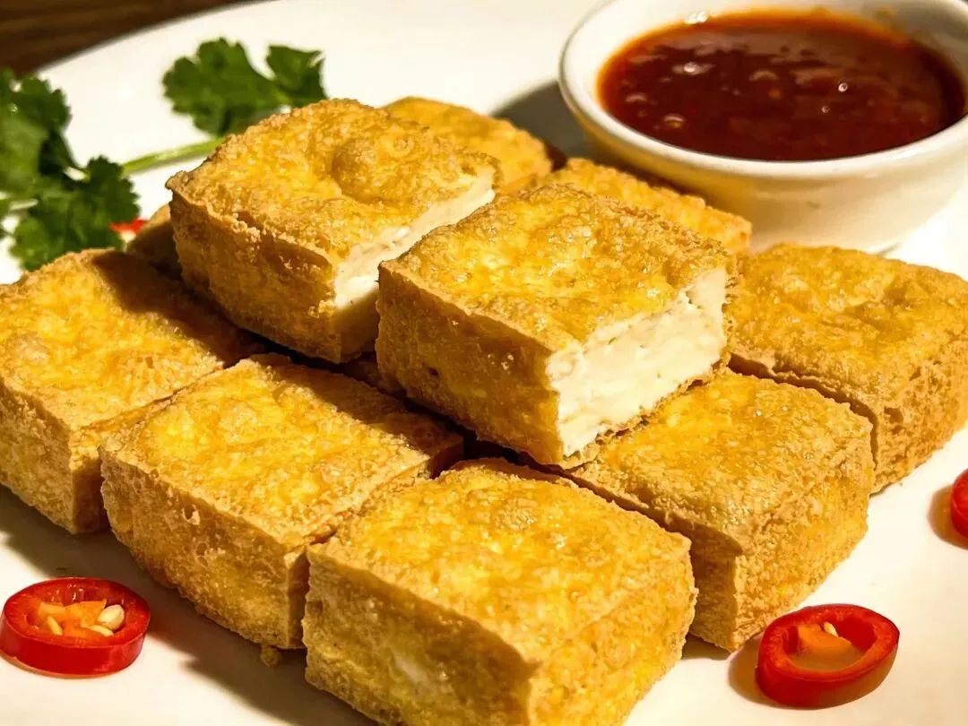 味:外酥得咔嚓作响,内嫩得像豆花,轻蘸甜酱或辣酱,