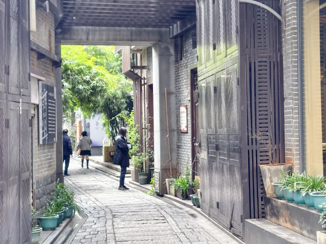 “不过”甜品屋,“有当无”茶器店,“西沉壁”汉服照相馆,店名都雅致清新,不喧哗、不吆喝,安安静静地开在那里。