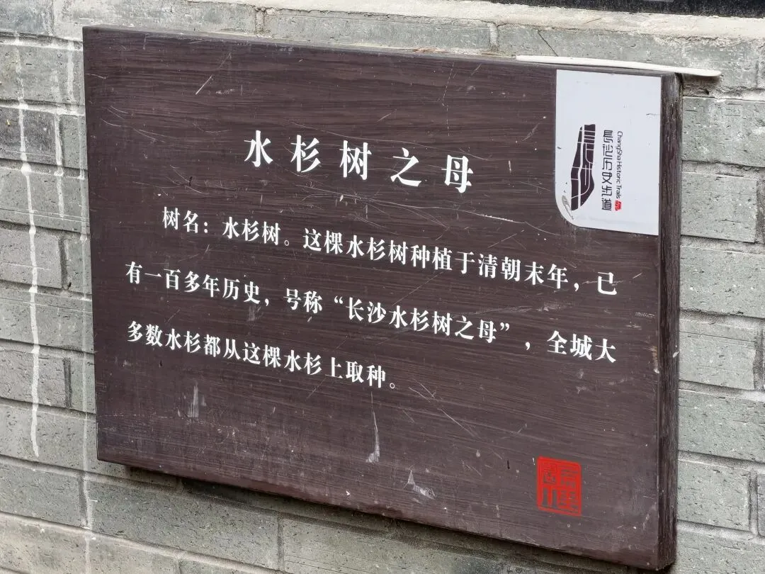 这棵水杉种植于清末,已愈百岁,被称为“长沙水杉之母”。