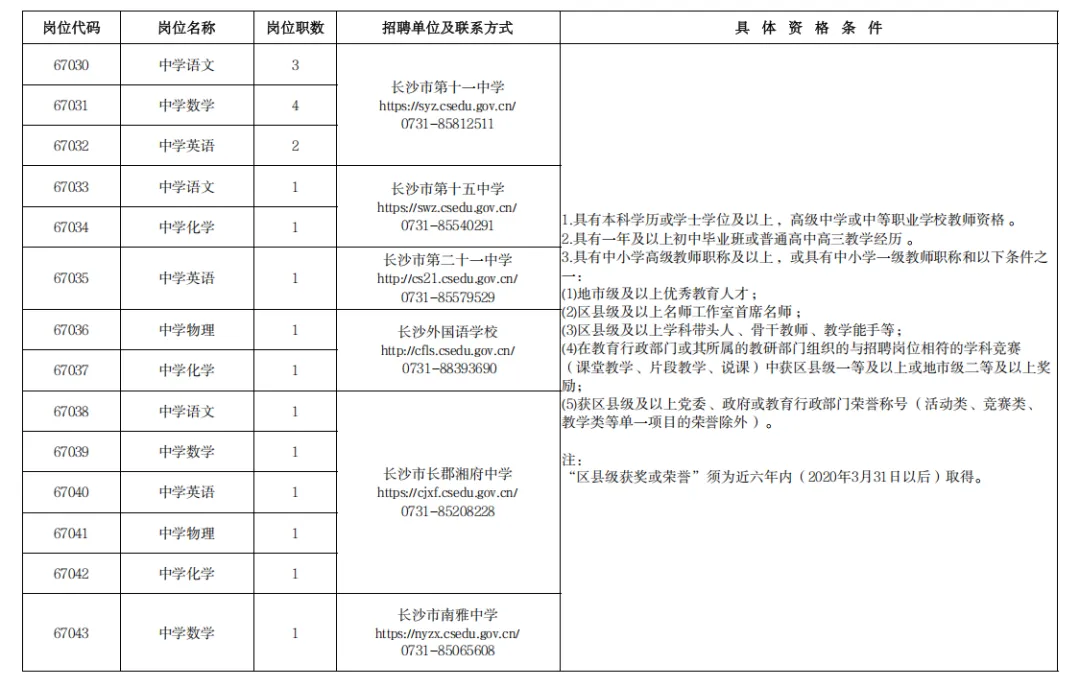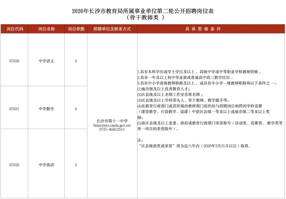 有编!长沙市第十一中学公开招聘骨干教师9人