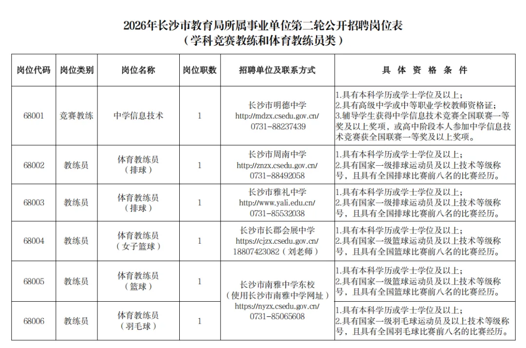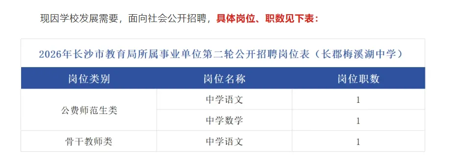 为了应对学位紧张局面,长沙正在大手笔新建中学、扩建中学。然后,不断地开启新一轮教师招聘工作,补充师资队伍。近日,2026年长沙市教育局所属事业单位第二轮公开招聘教职工公告发布。
