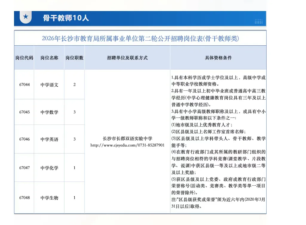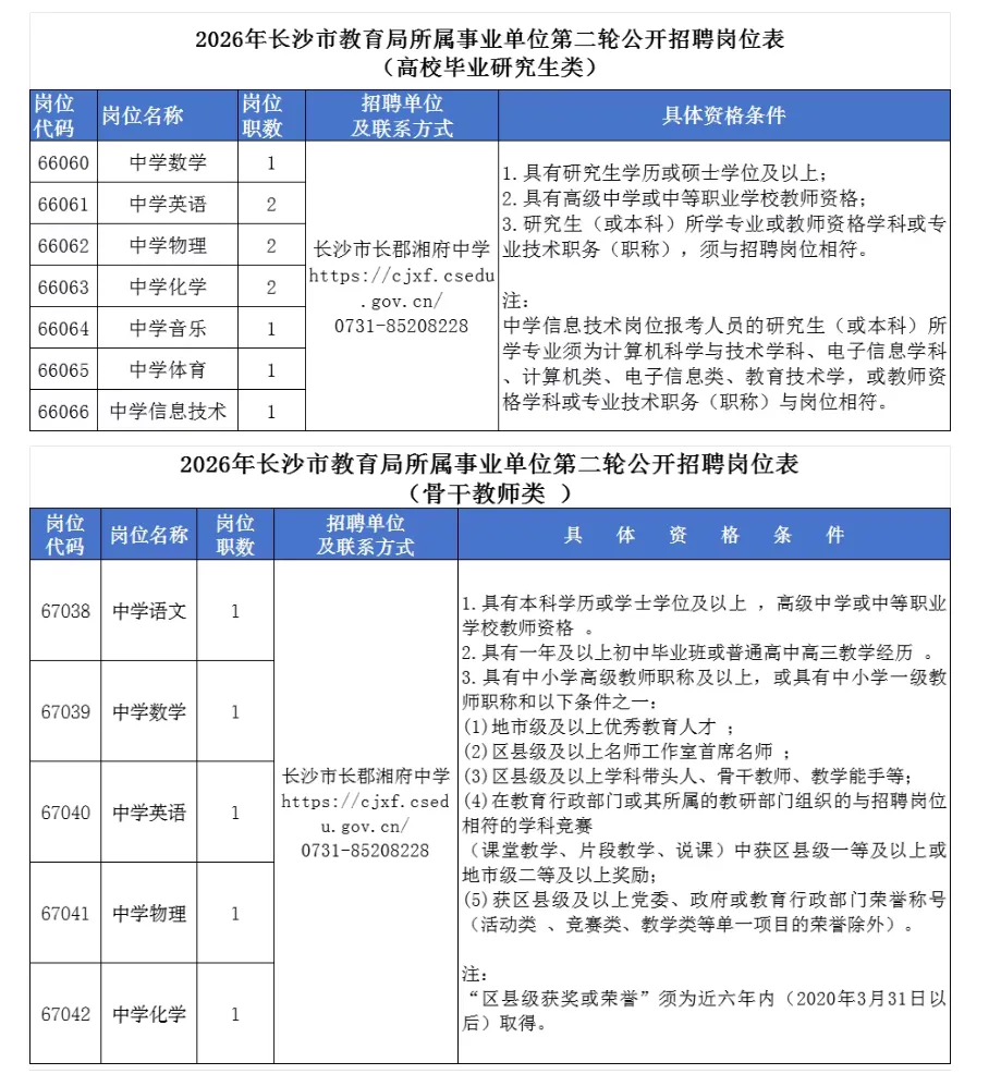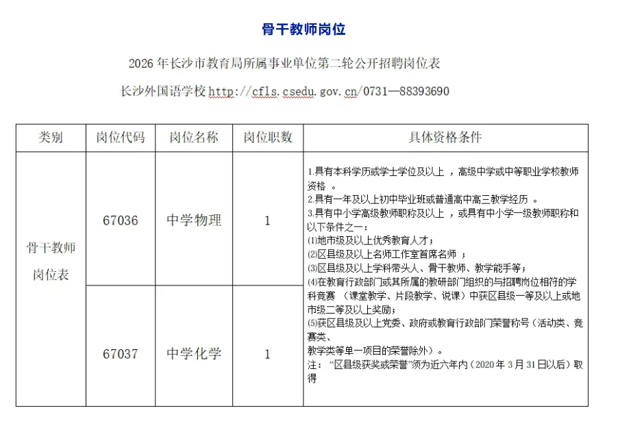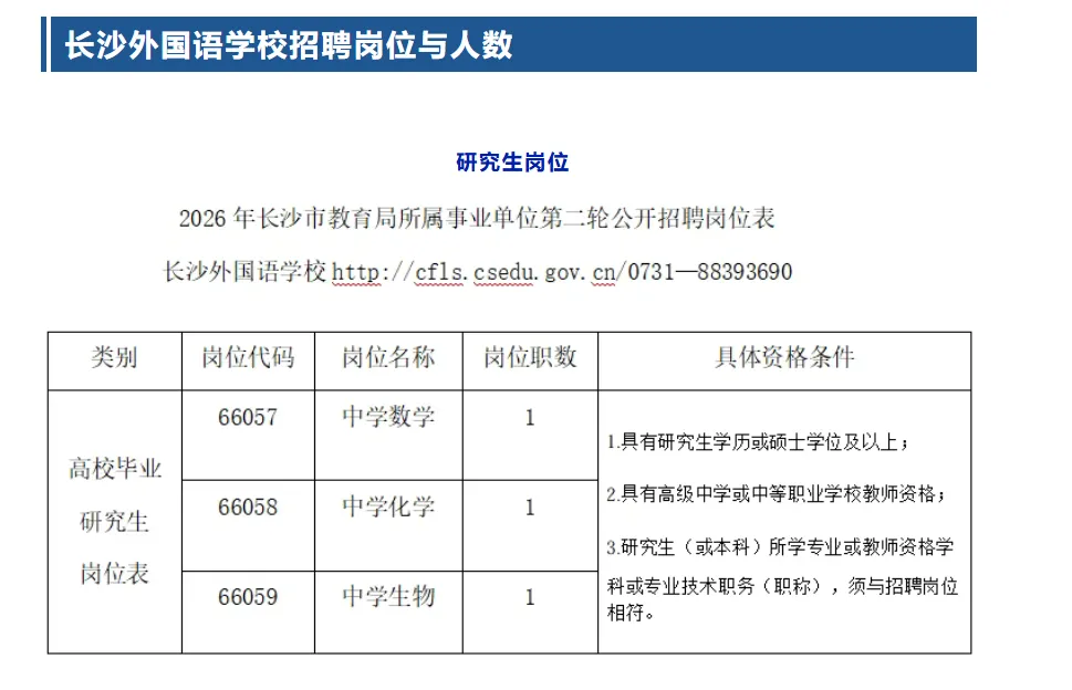 长沙外国语学校2026年第二轮公开招聘研究生、骨干教师公告