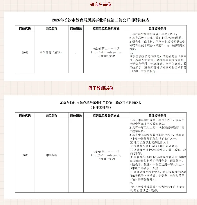 有编!长沙市第二十一中学2026年第二轮公开招聘教职工公告