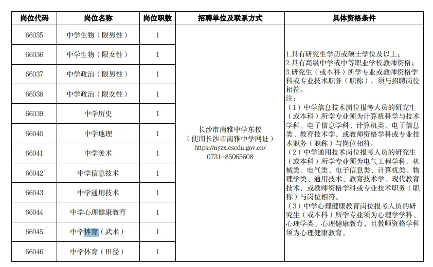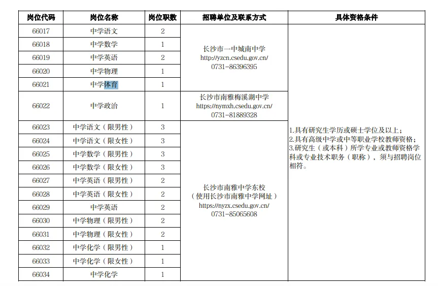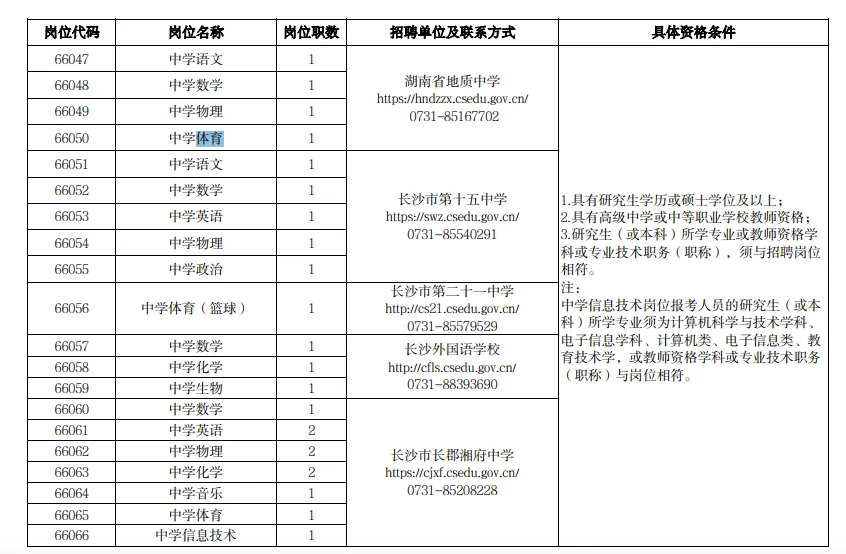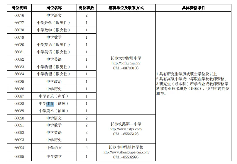 长沙市教育局人事处:0731-84899737