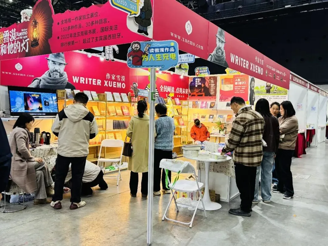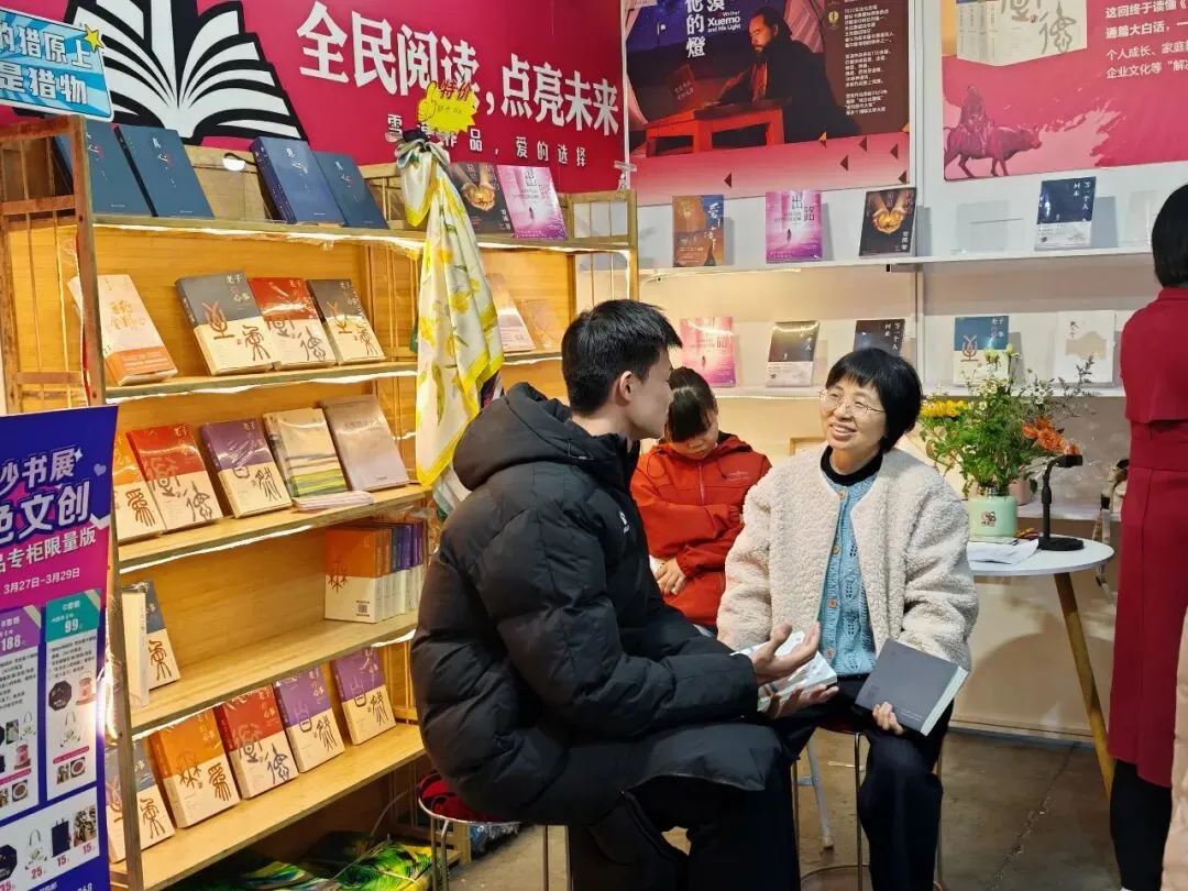 今天还遇到两位书商,都是来自我家乡的人。她们分别在衡东和衡山开书店,在这个行业已做了二十多年,经济效益颇好。看到我们展位前人潮涌动,她们很快相信了这些作品的魅力,各自拿了一些书,准备回去好好读读。