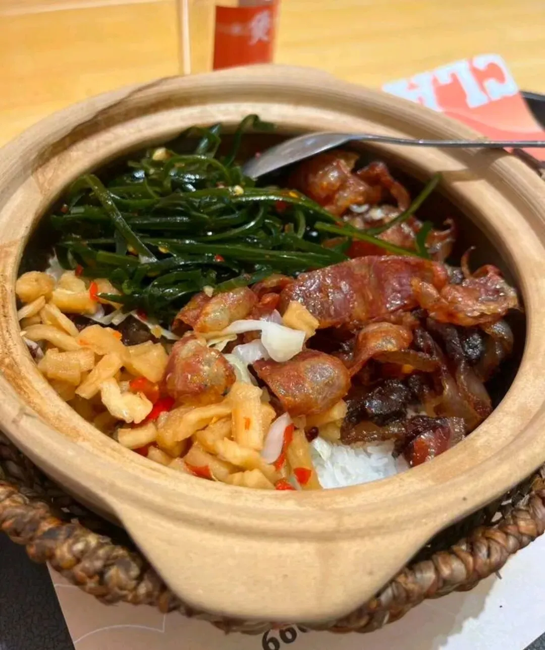 锅巴是重头戏——用勺子轻轻一撬,整片锅巴完整掀起,嚼起来嘎嘣脆,满口焦香。排骨煲仔饭也值得一试,排骨提前腌制过,嫩滑入味。