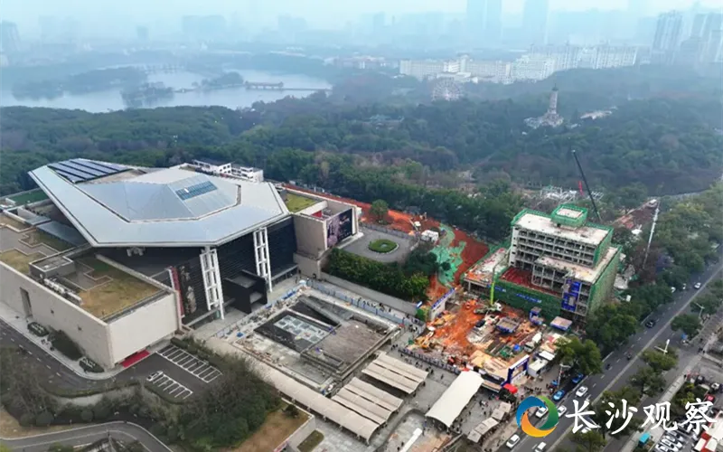 在长沙太平老街,贾谊故居文旅项目正稳步推进。工地现场管理严格有序,主入口、大观楼、西厢房、寻秋草堂、芝岑斋、靓舫及地下遗址展厅等主体建筑已拔地而起,轮廓初现。
