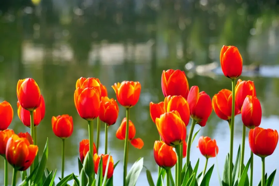 郁金香编织成一片金色的海洋,春风拂过,花香四溢。漫步在郁金香花海,红的炽热、粉的温柔、黄的明媚,每一步都像是踩在春天的琴键上,奏响专属的浪漫序曲。